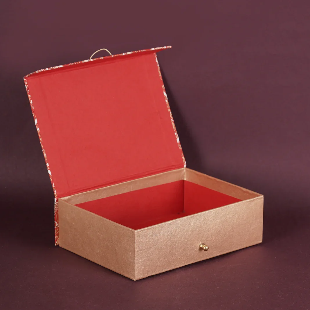 • Planning a wedding, party, or any special event? Our luxury gift boxes are available in bulk—perfect for wedding favours, return gifts, hampers, or as mithai/ sweets box. Whether you're looking for a coordinated look or a mix of designs, we've got you covered. If you're ordering over 5 sets, get in touch to discuss timelines before we start getting to work.