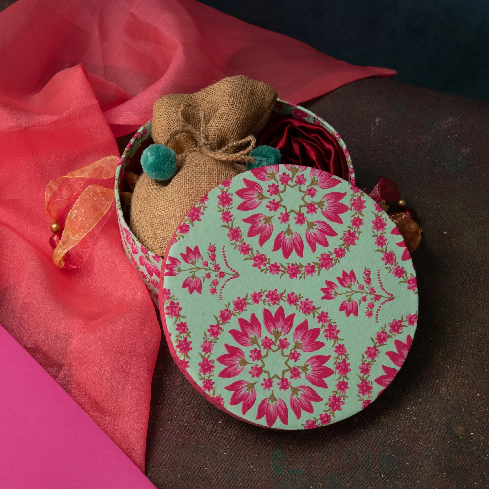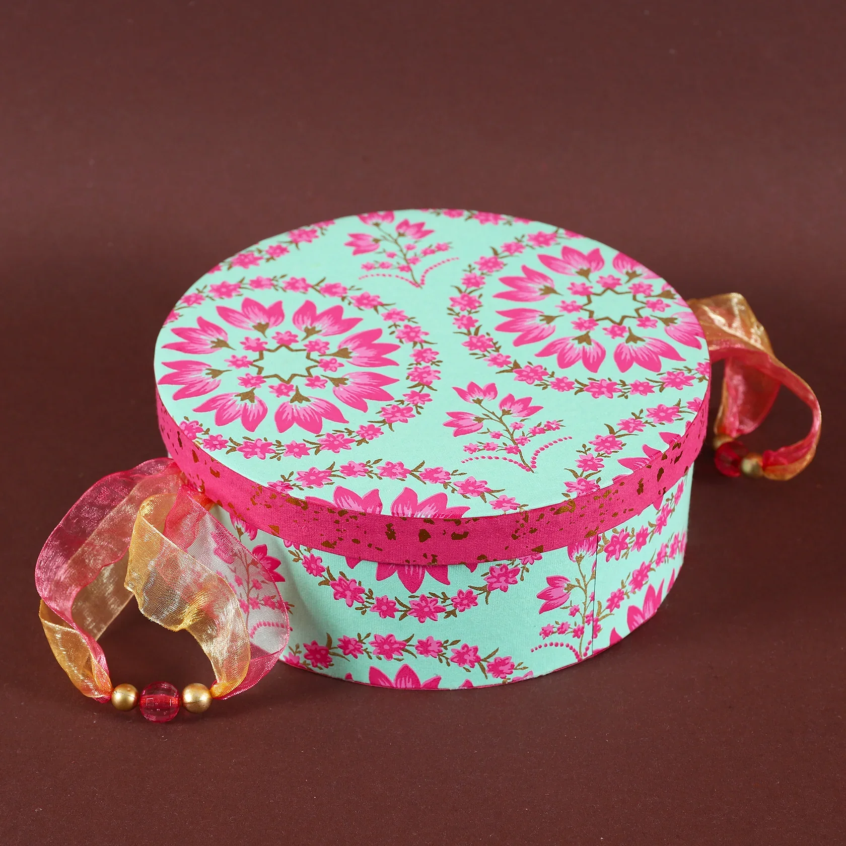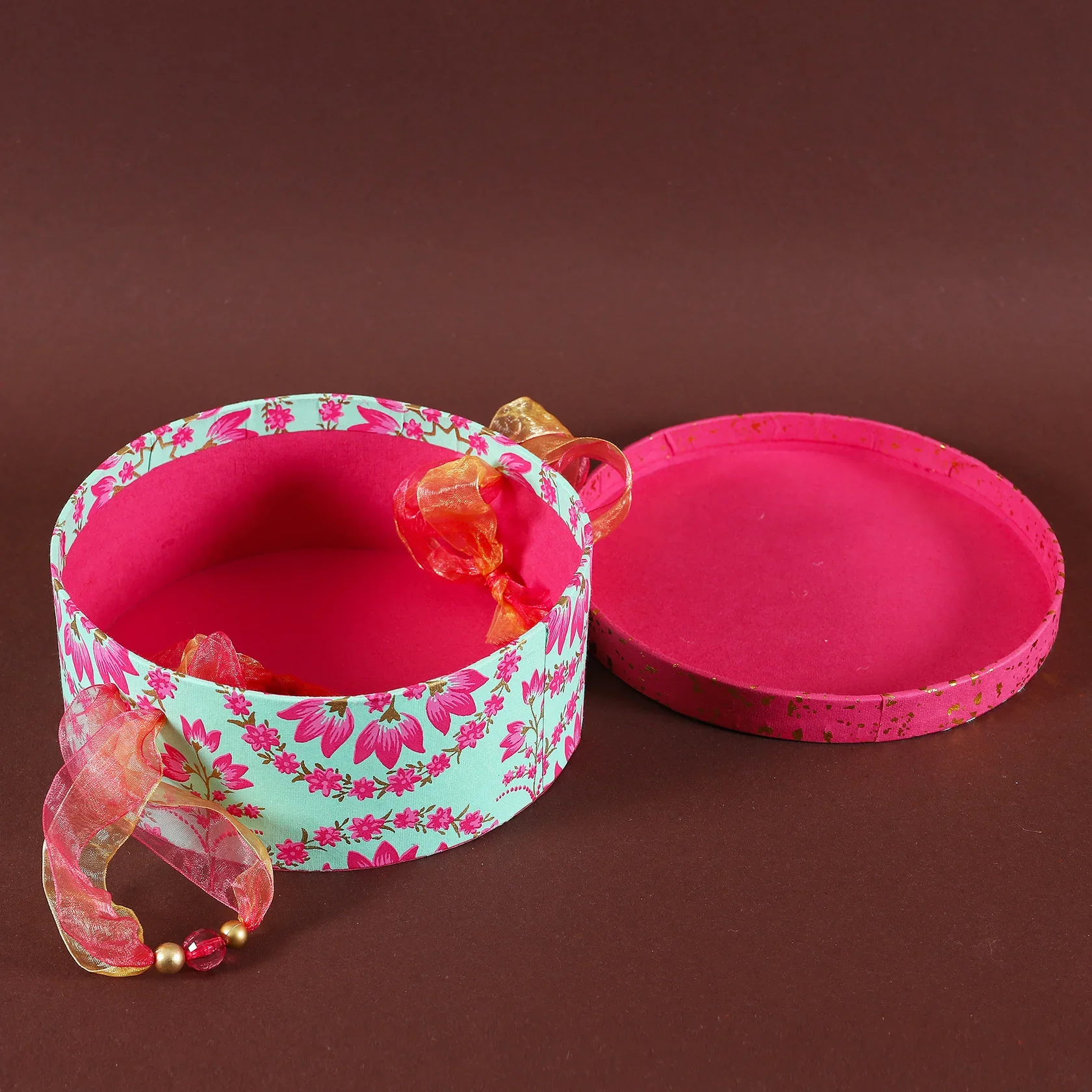 Round Gift Box- Tohfa (Gift)- Pink & White