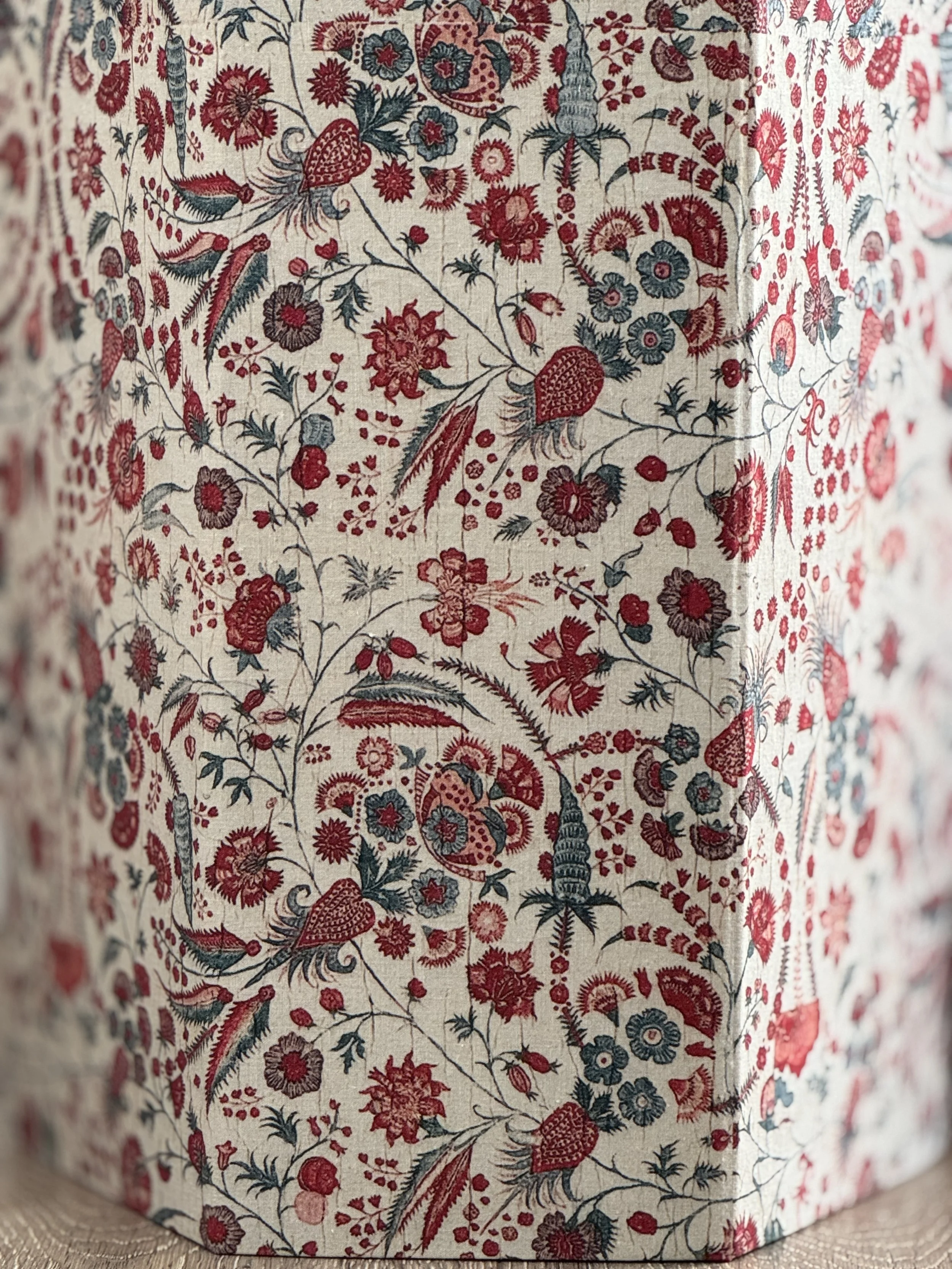 Made of hardboard with hand block printed cotton fabric, this crafted collapsible waste paper bin is a brilliant example of functional design