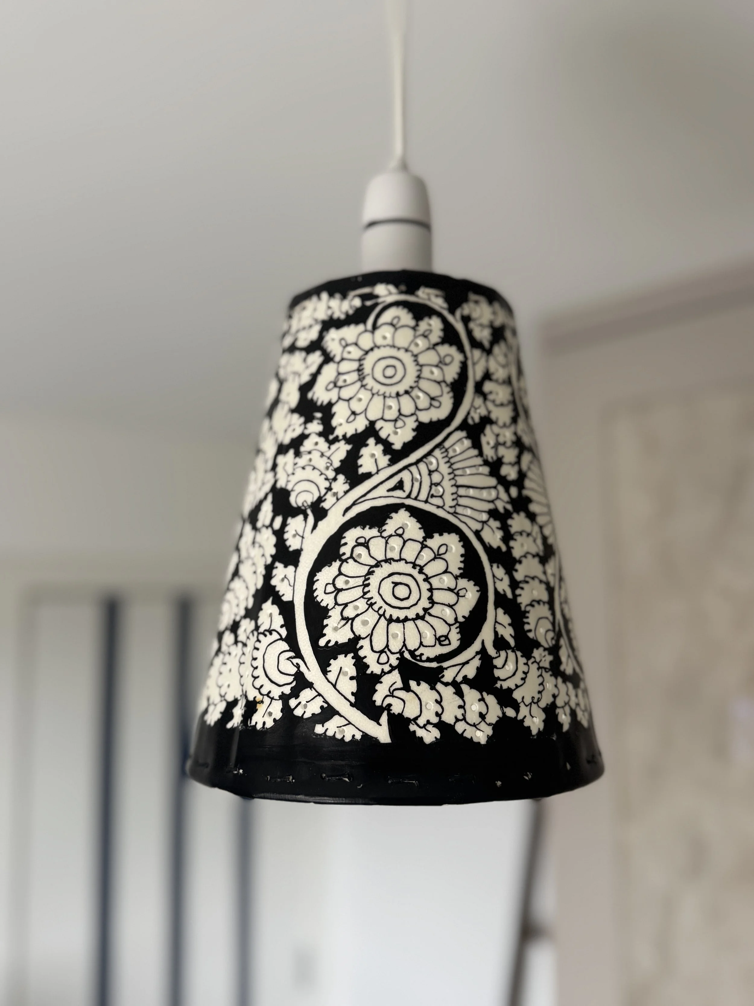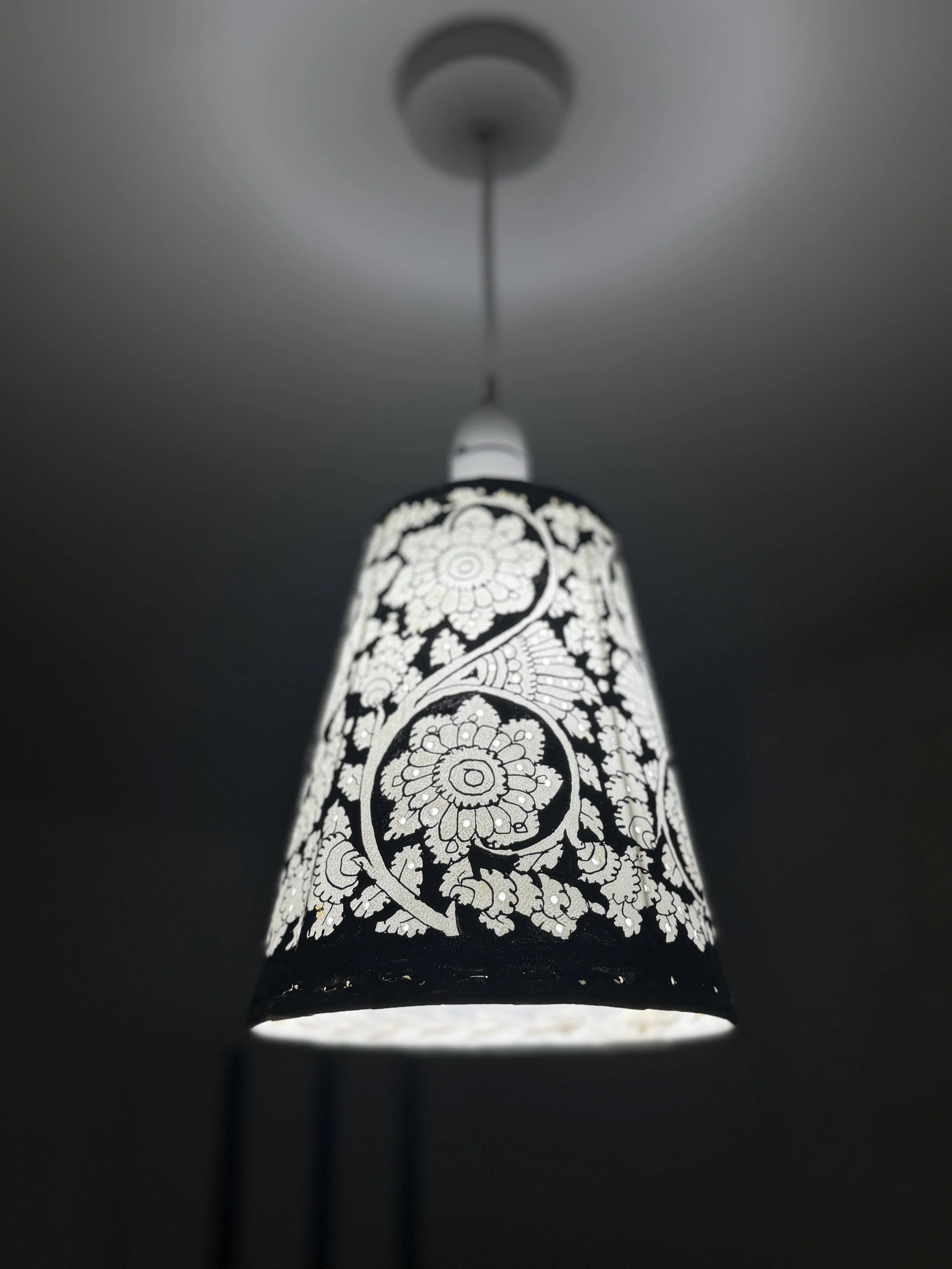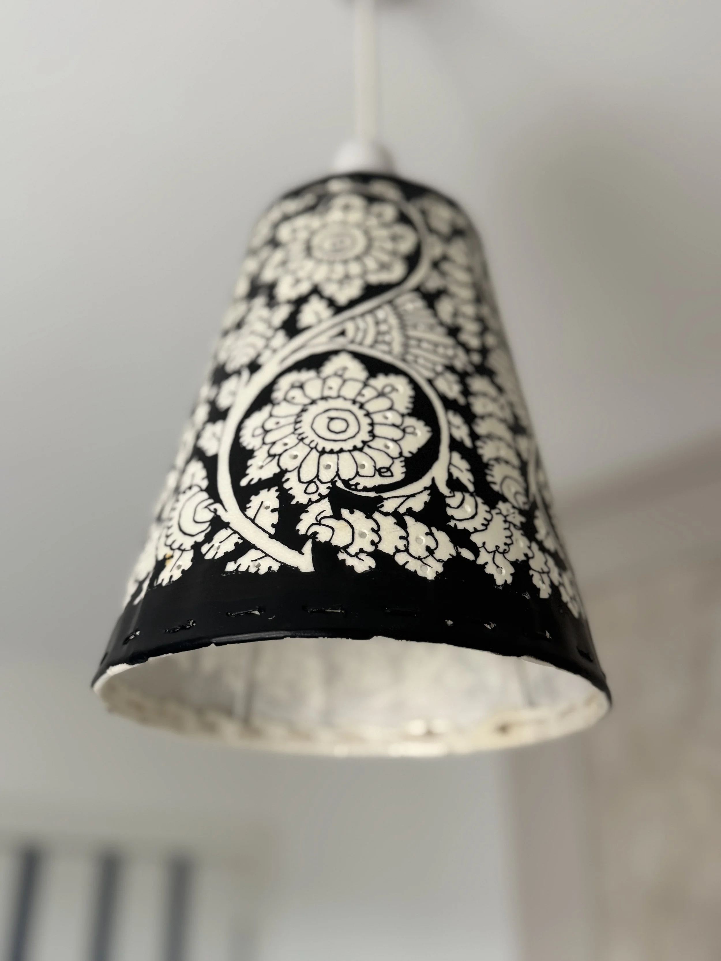 Leather lampshade, Indian Tholu Bommalata handpainted art.