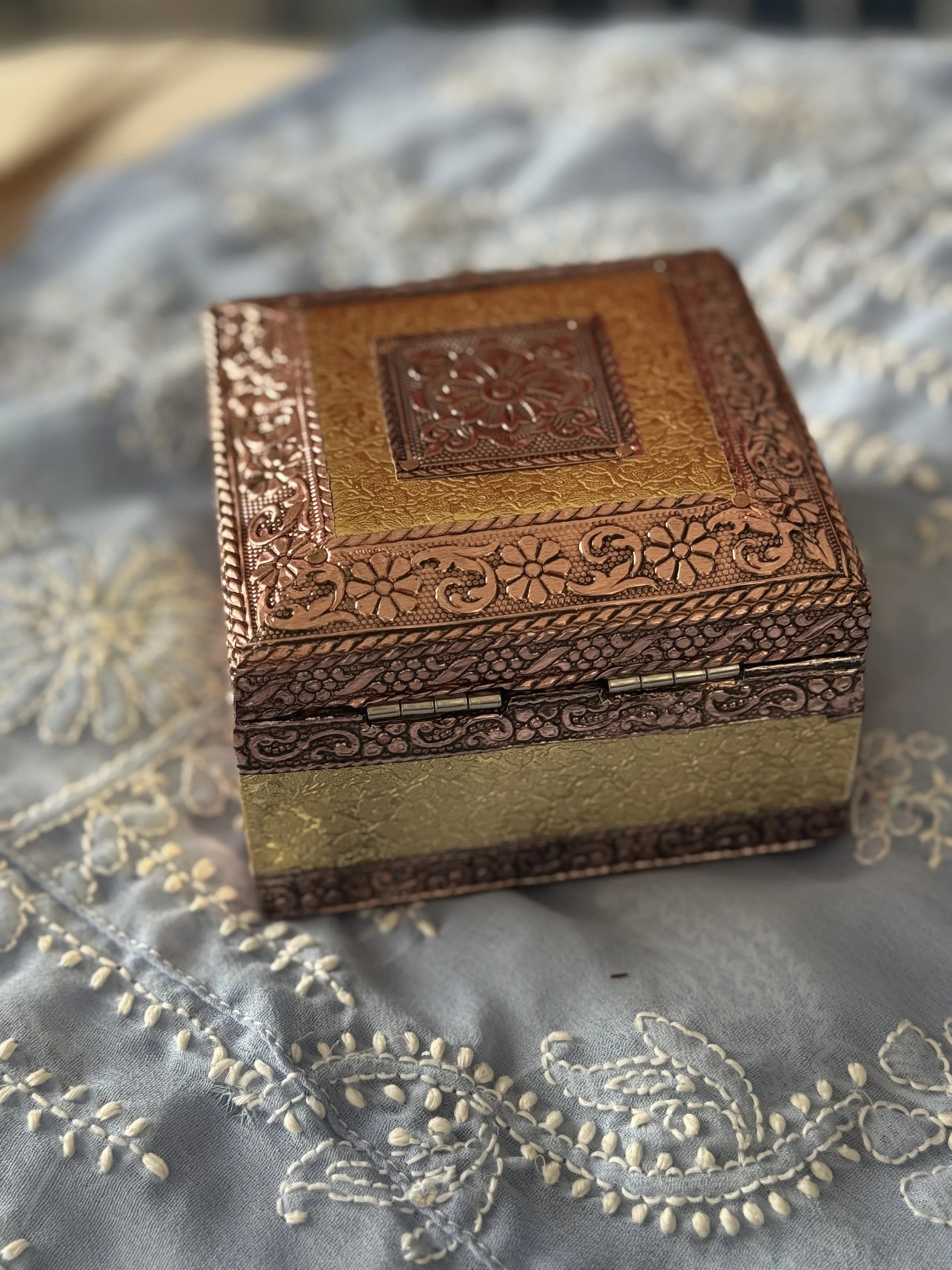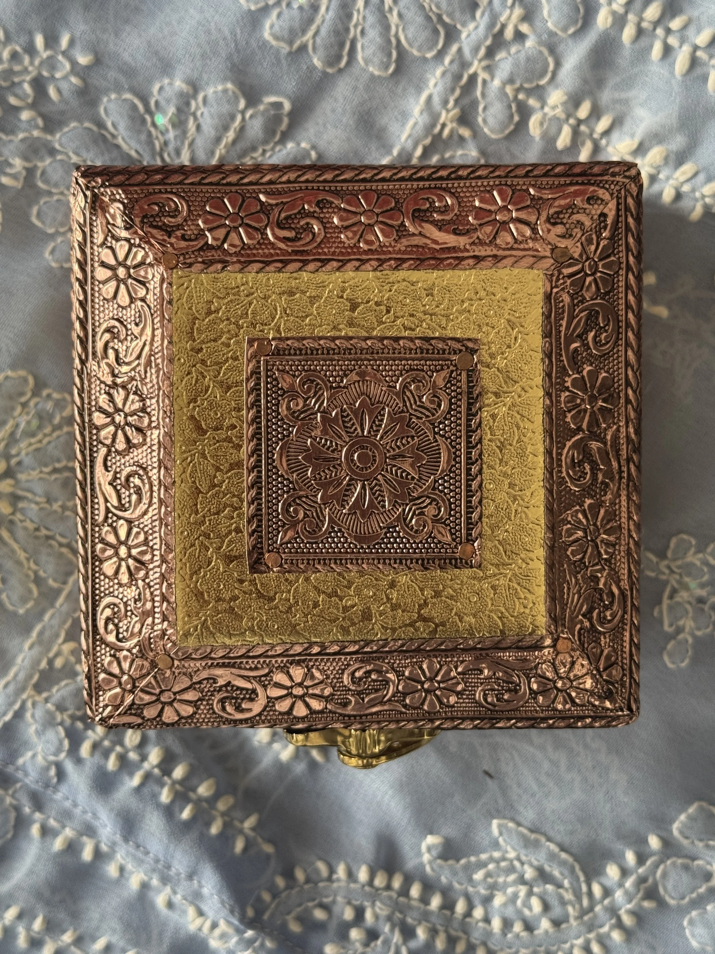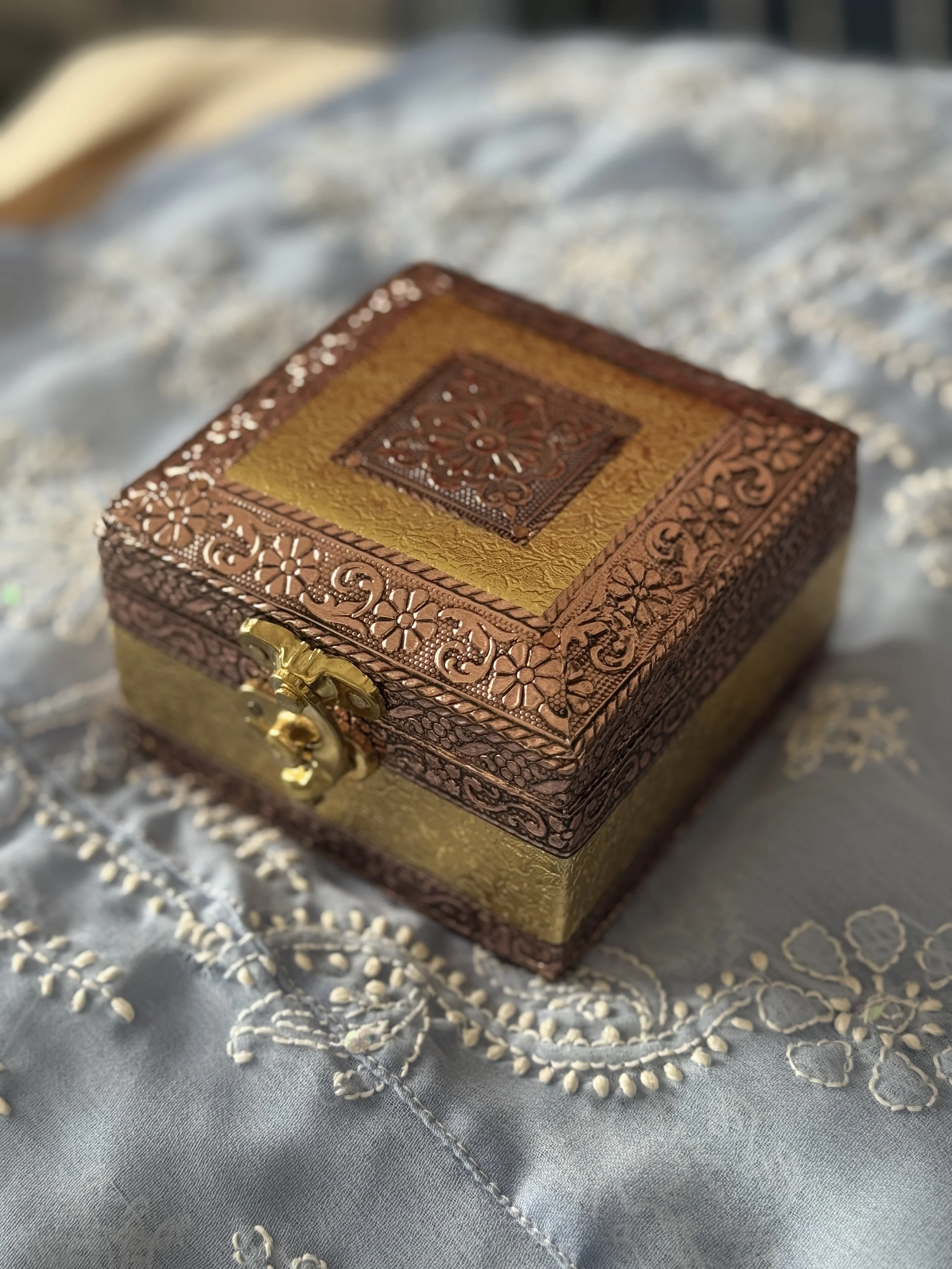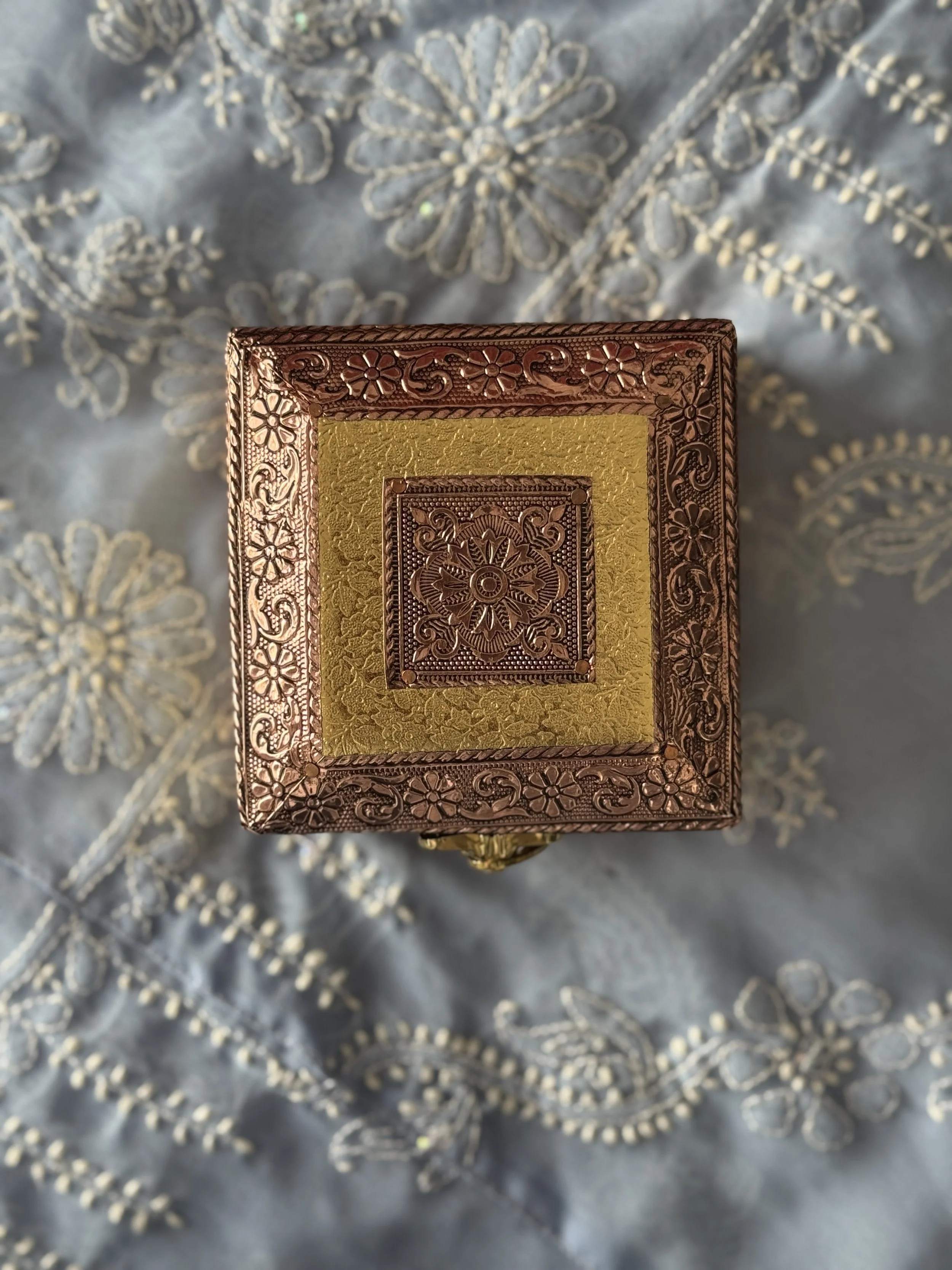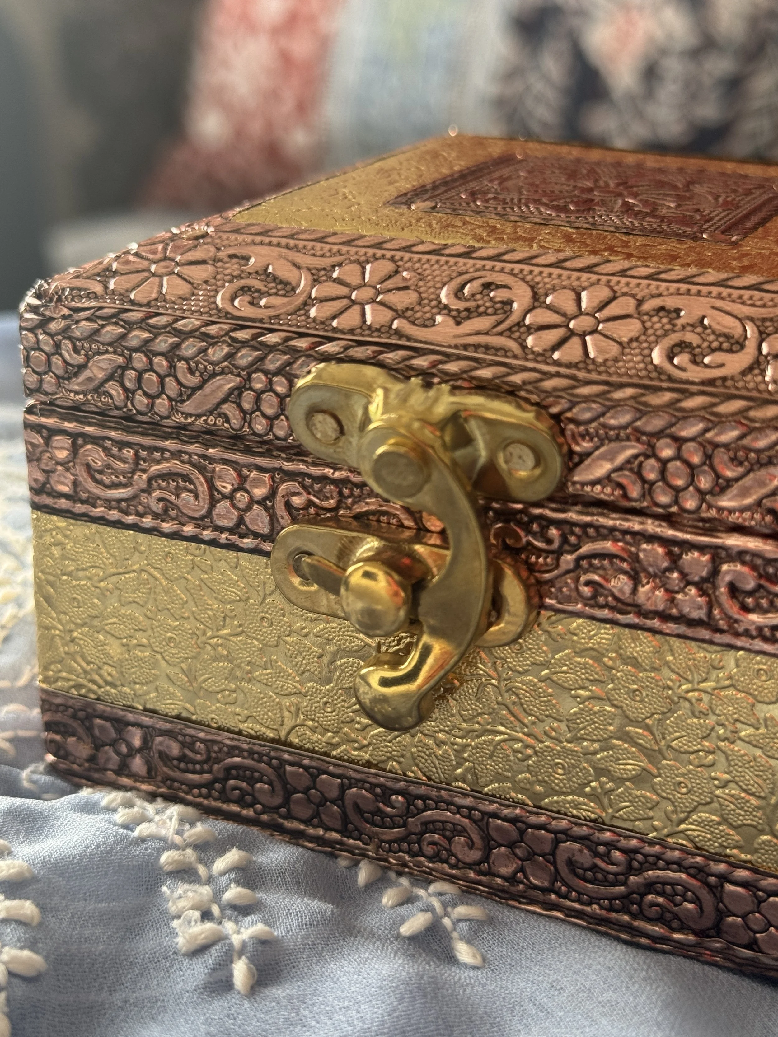 Cotton Bud / everyday jewellery or watches storage box. The high definition print features gold outline on the floral motifs that glow with a ray of sunshine as seen in photos.
