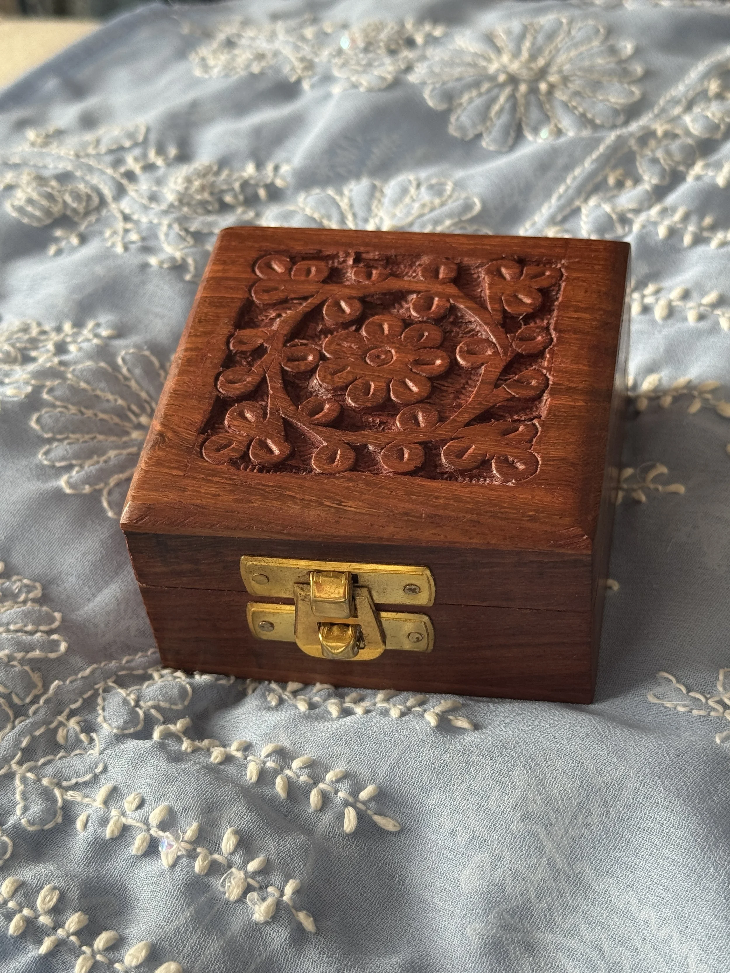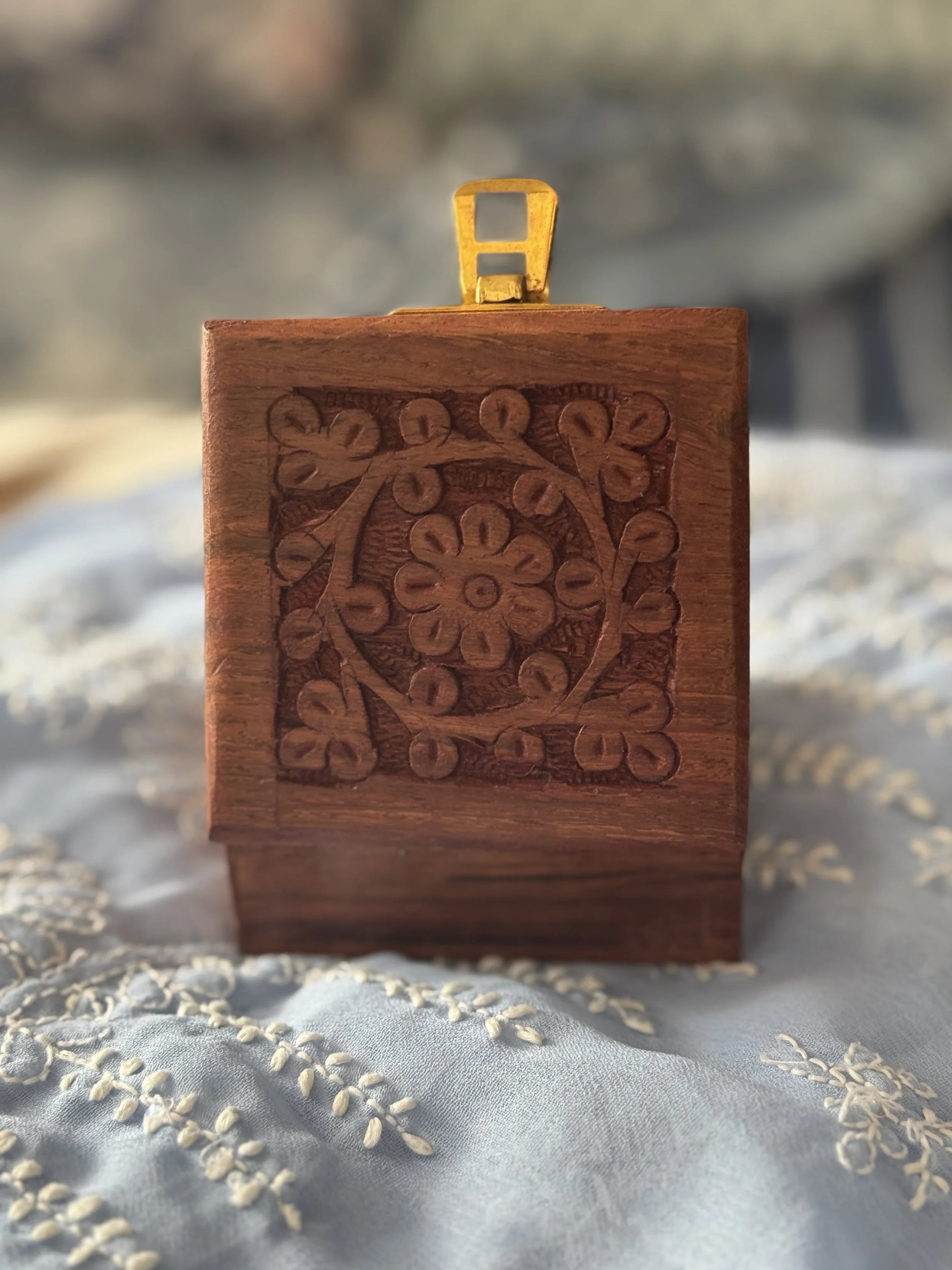 Cotton Bud / everyday jewellery or watches storage box. The high definition print features gold outline on the floral motifs that glow with a ray of sunshine as seen in photos.