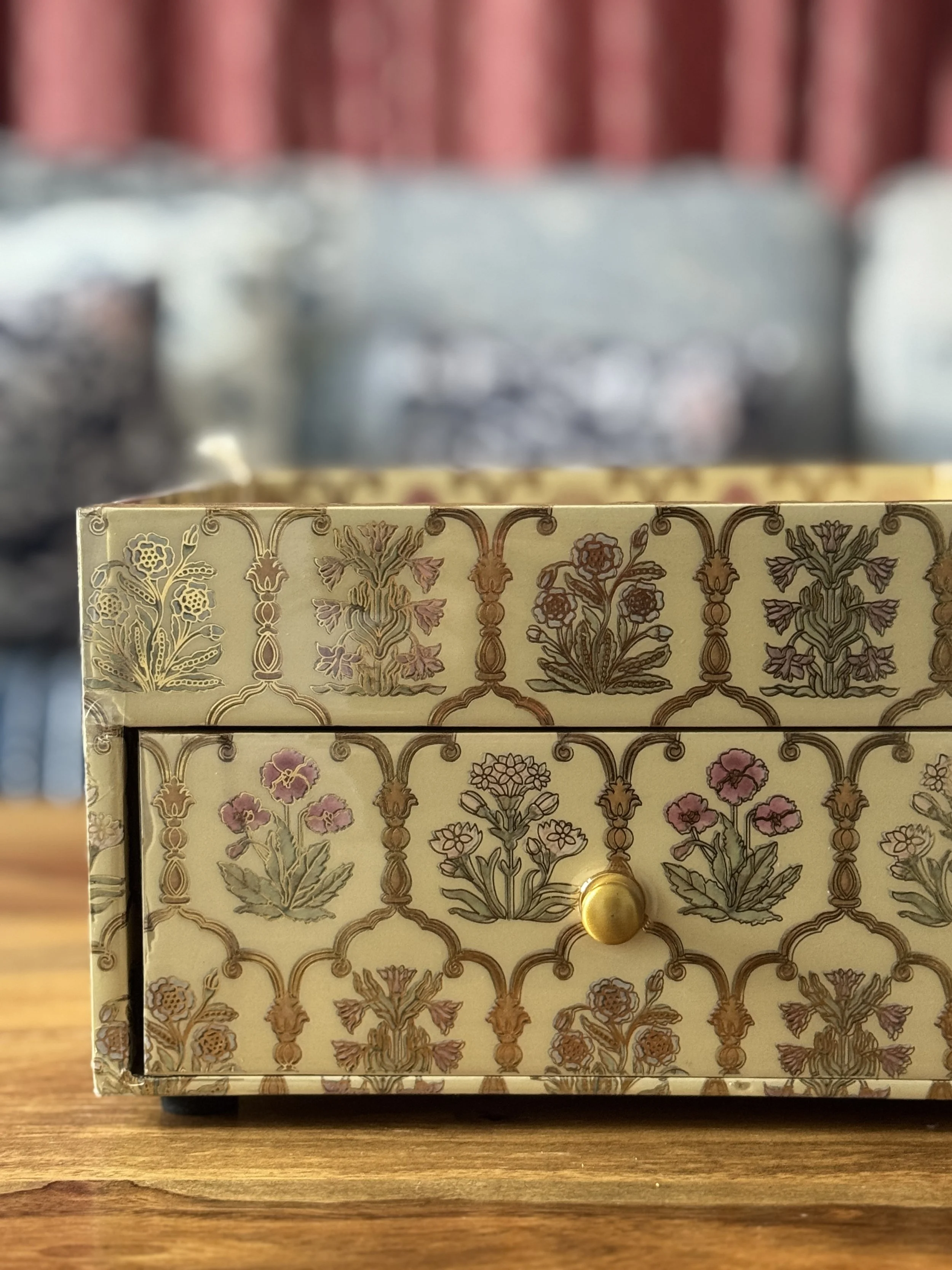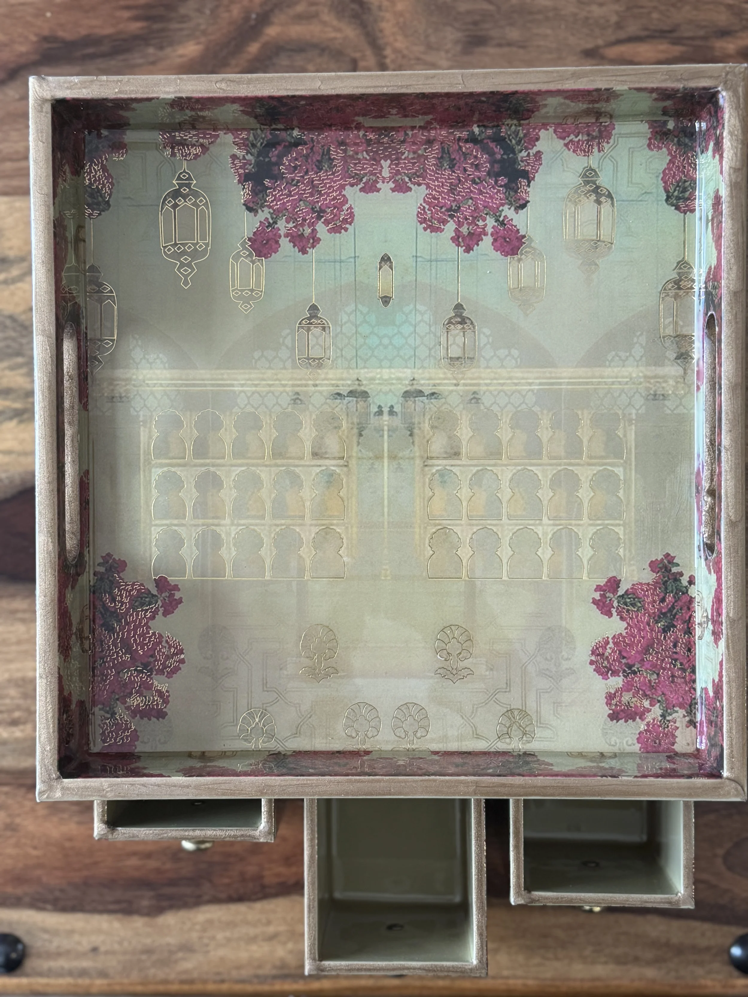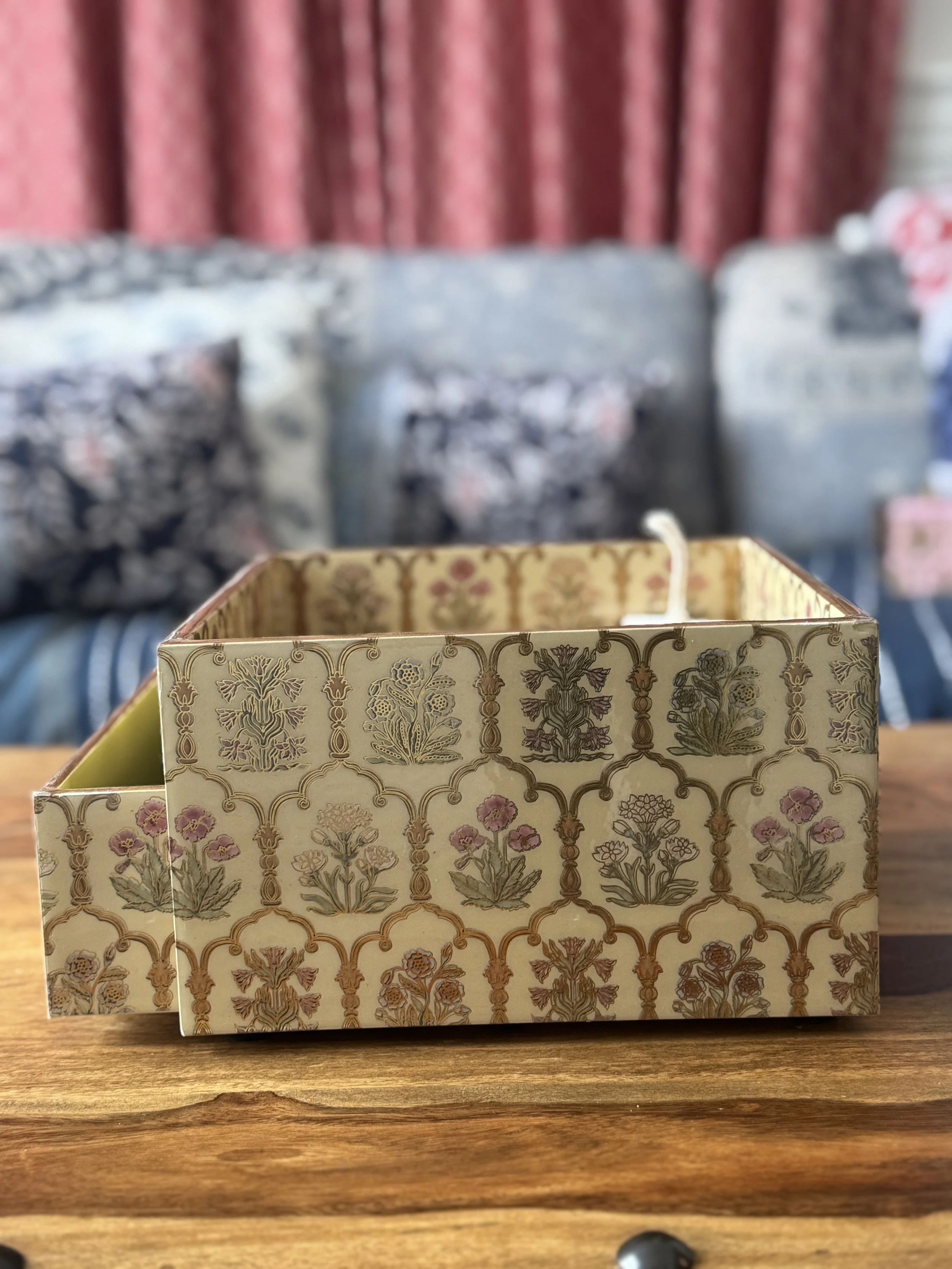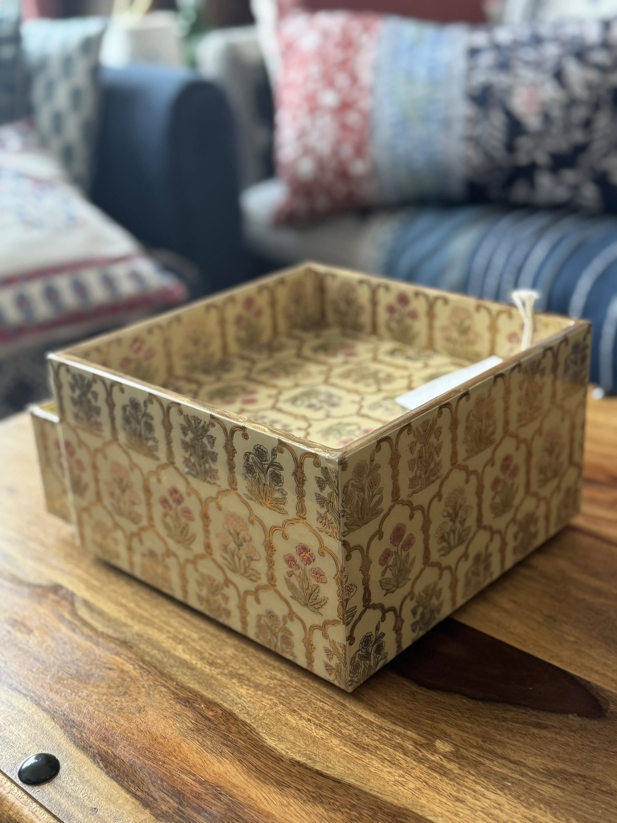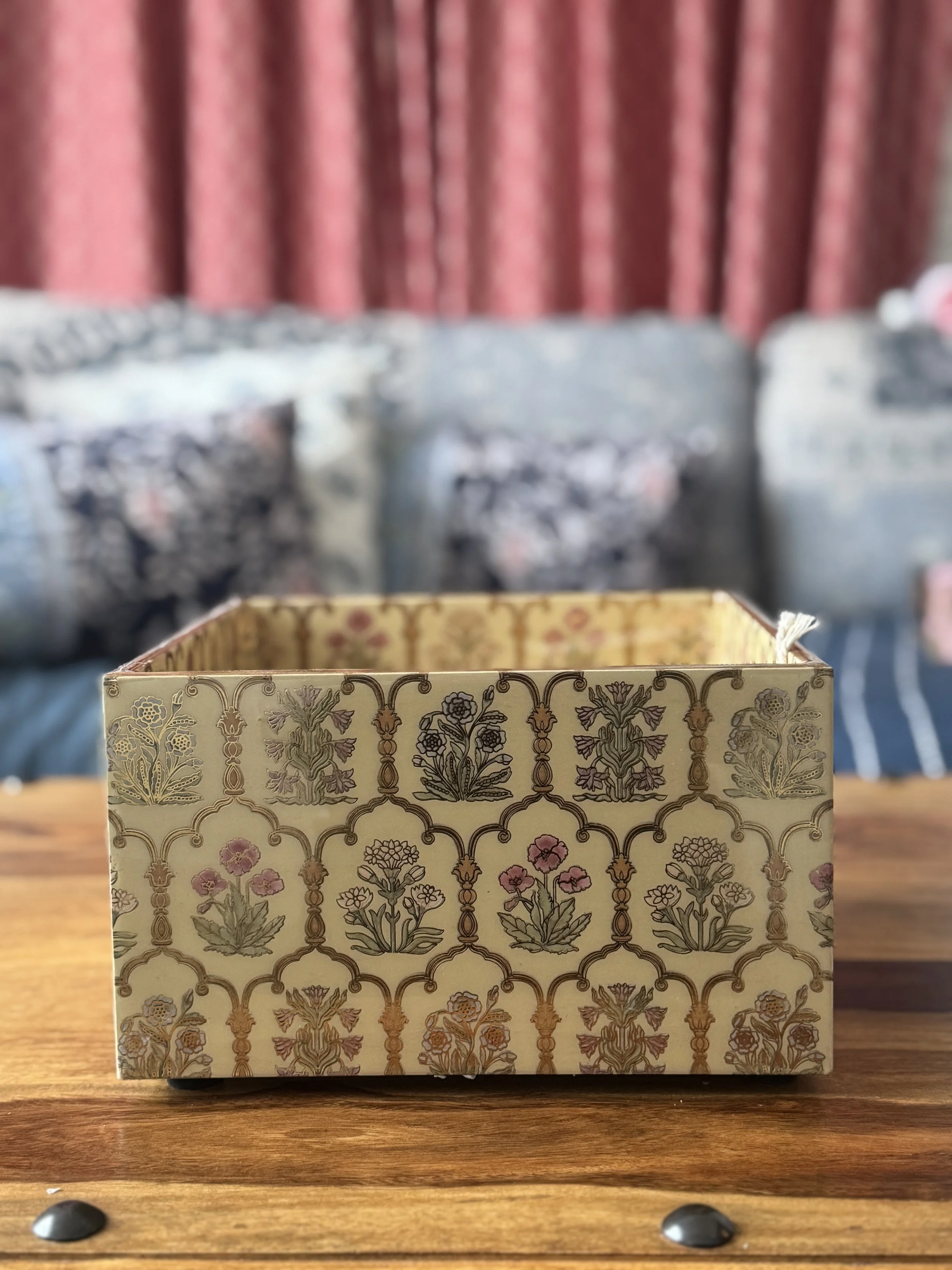 Elevate your snack game with our beautifully crafted mango wood platter, designed for effortless entertaining. Featuring a striking blue floral and bird motif, covered with enamel coating, this round platter comes with a built-in (detachable) central dip bowl, perfect for serving tortillas, chips, crackers, veggies — and of course, your favorite dips or salsas.