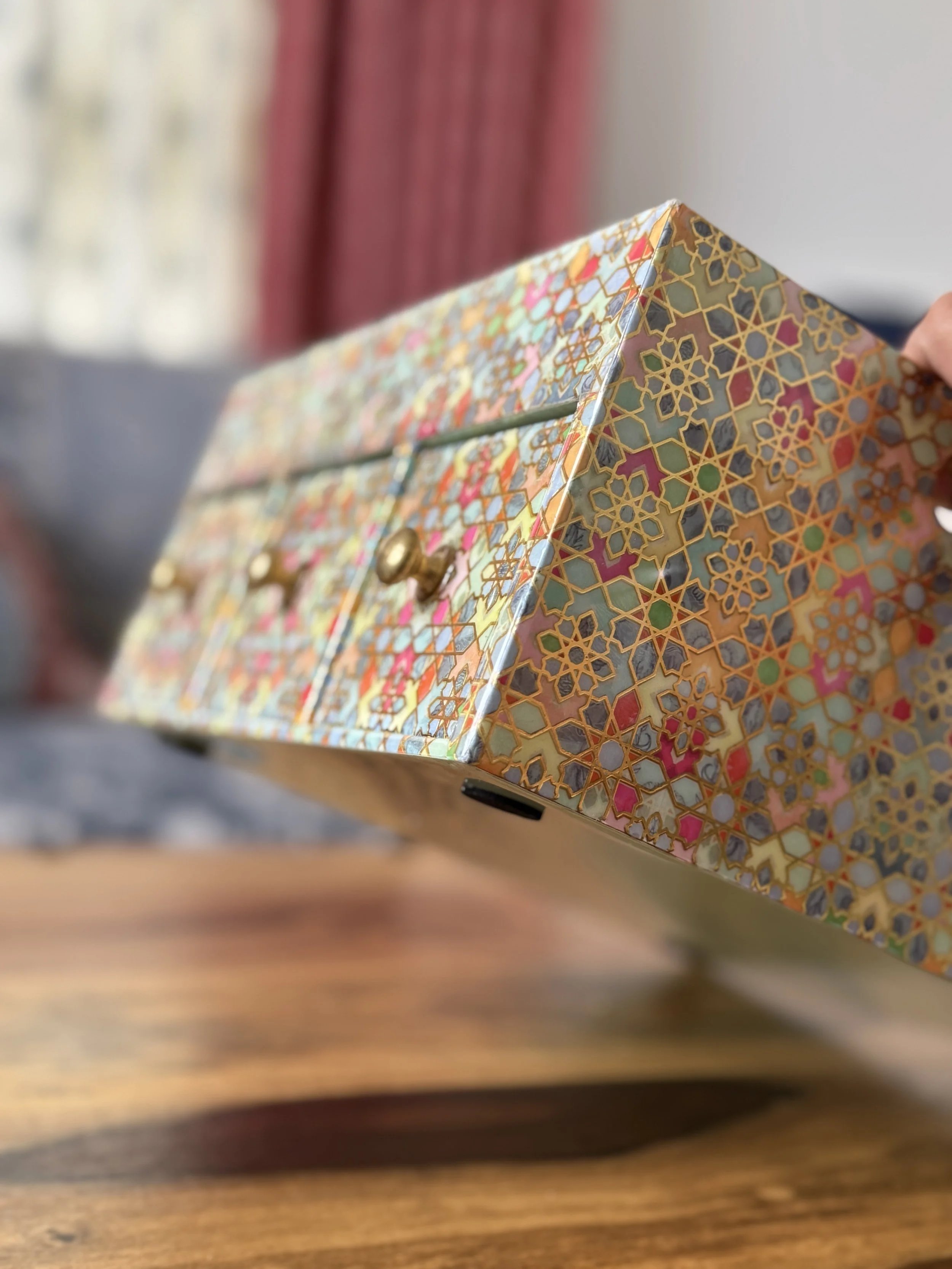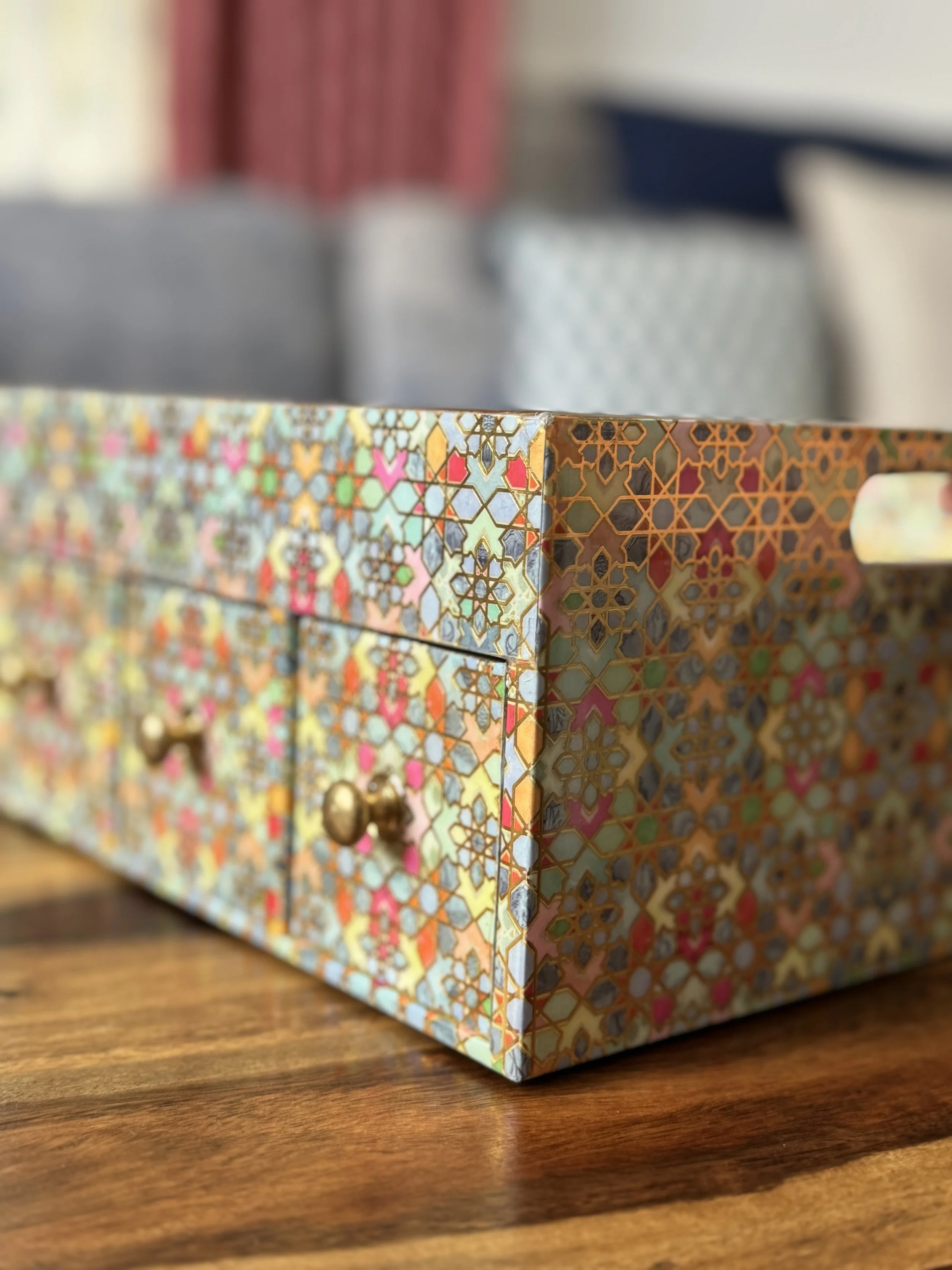 Handcrafted from sustainable mango wood, this piece combines function with artisanal elegance, making it a stunning centerpiece for casual gatherings or festive occasions.