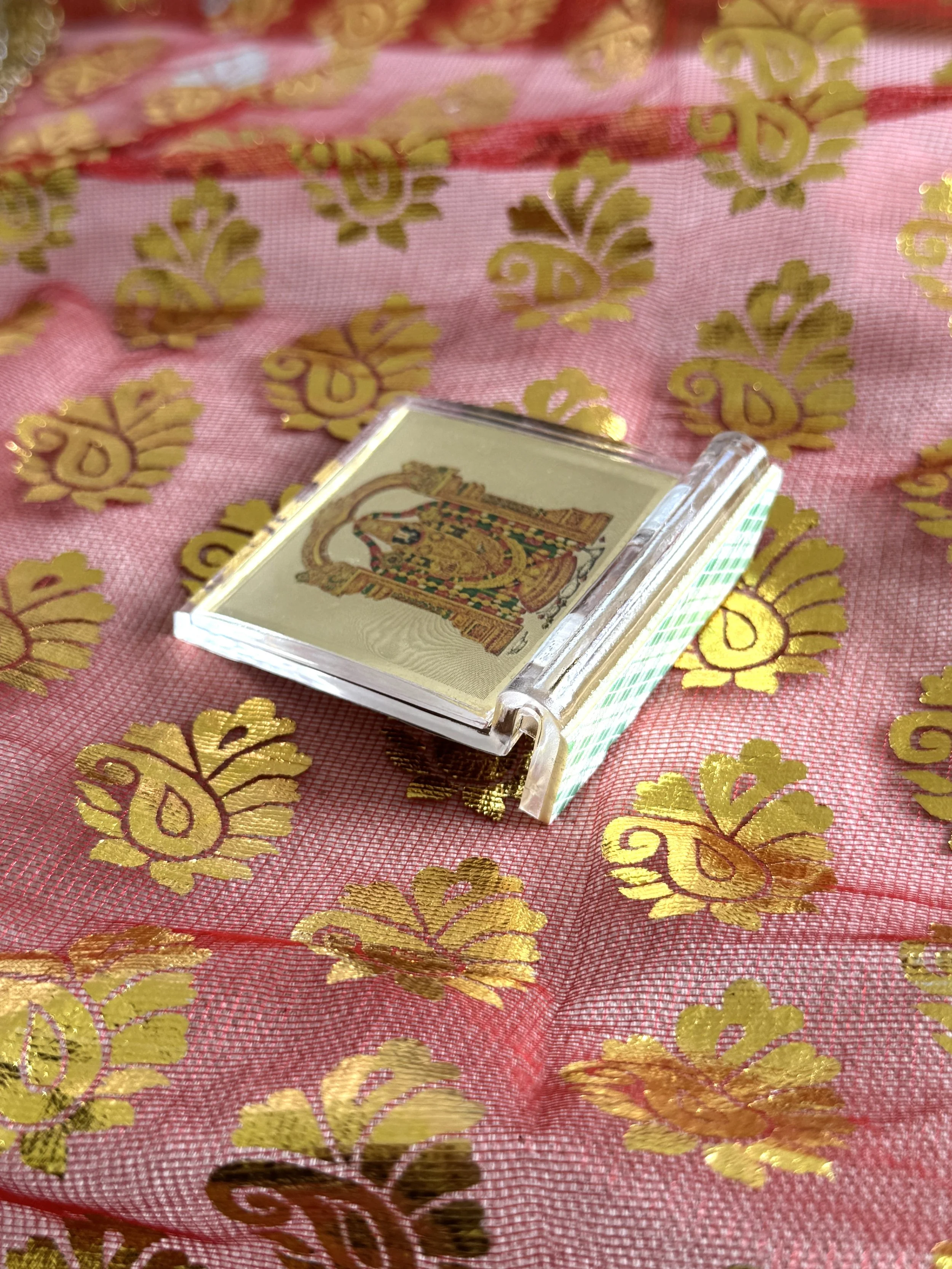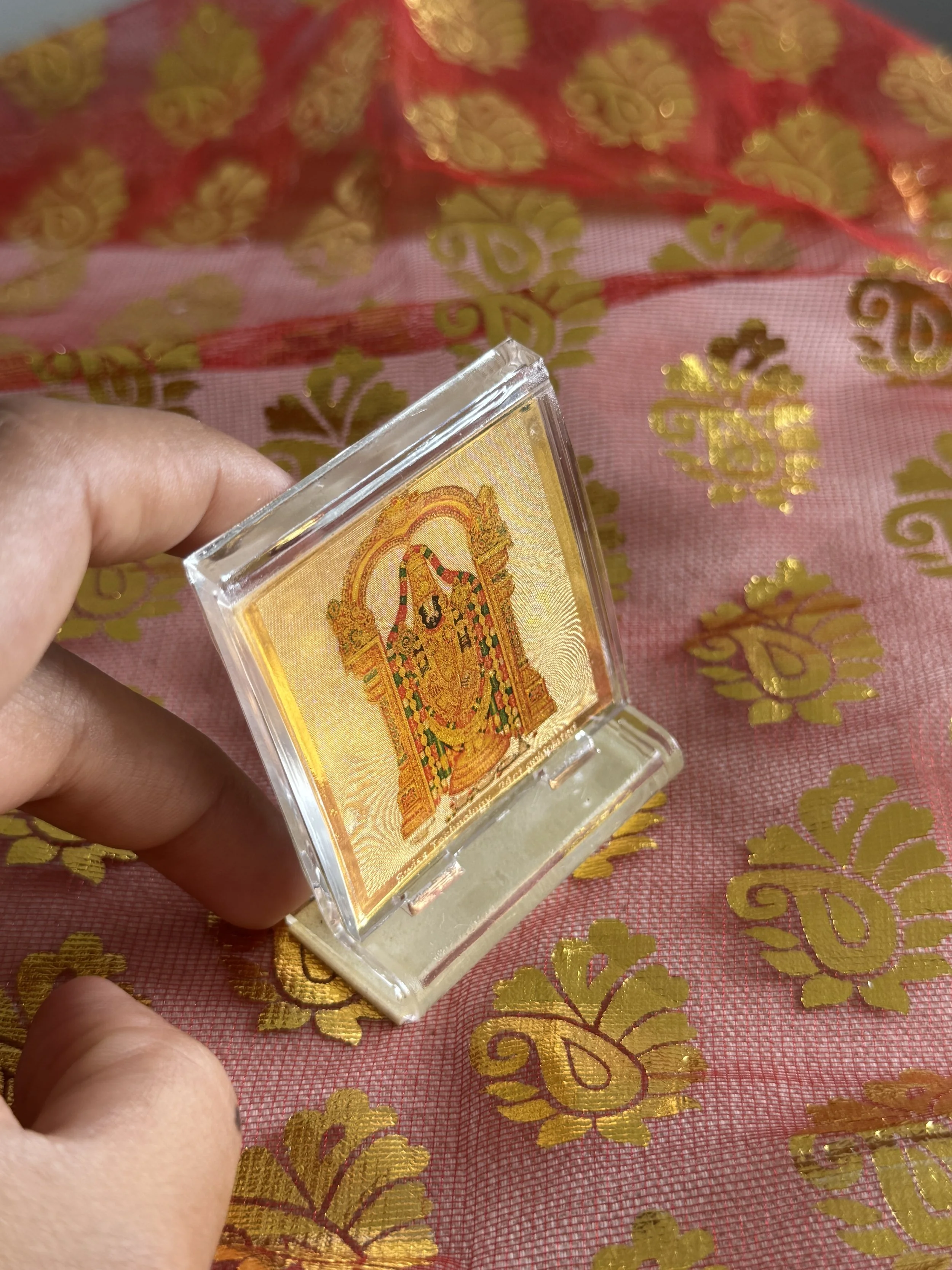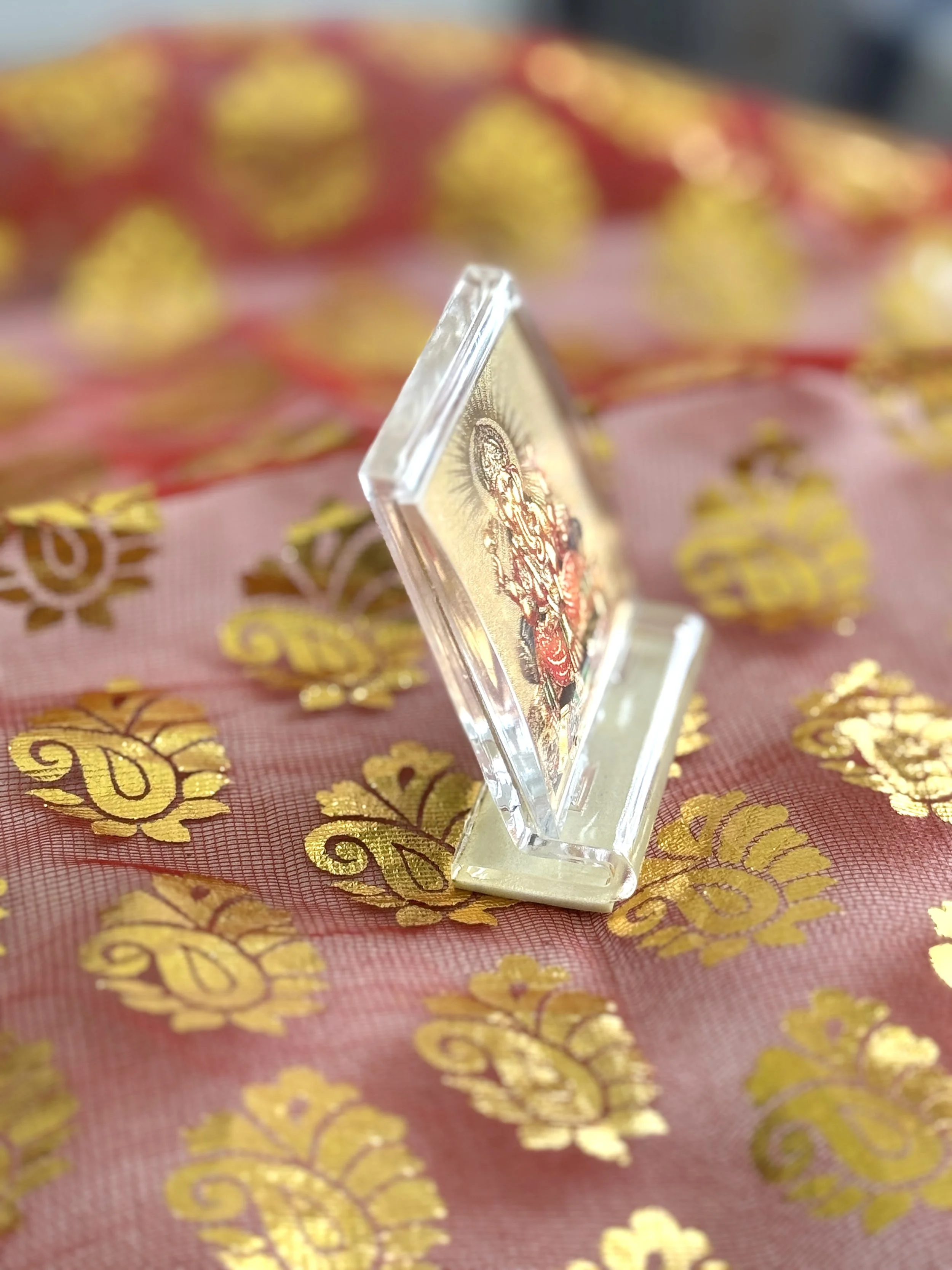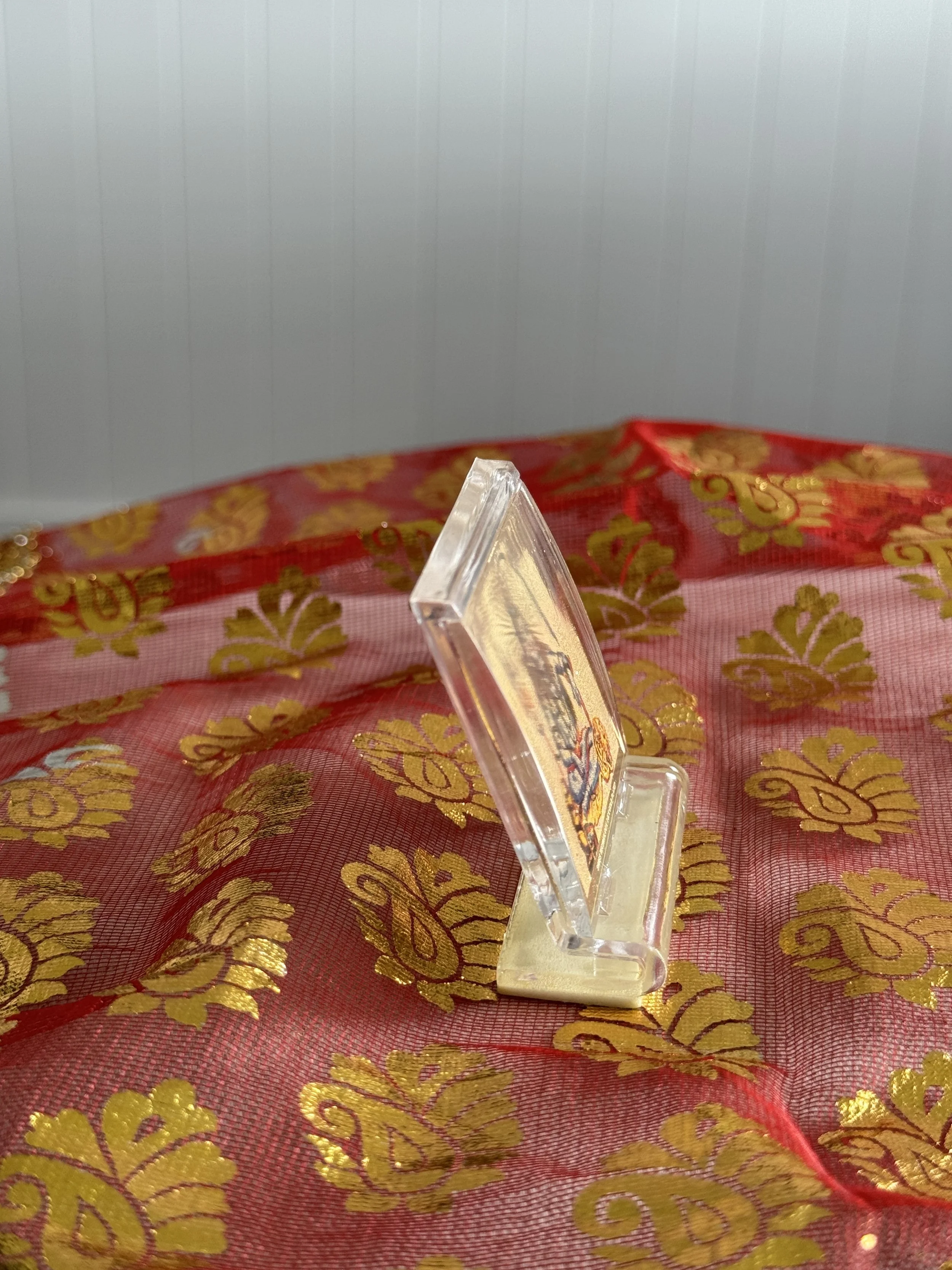 A timeless classic of Shrinathji in 24 Carat Gold Plated Foil. Bring spirituality and calmness to your car, home office or temple room.