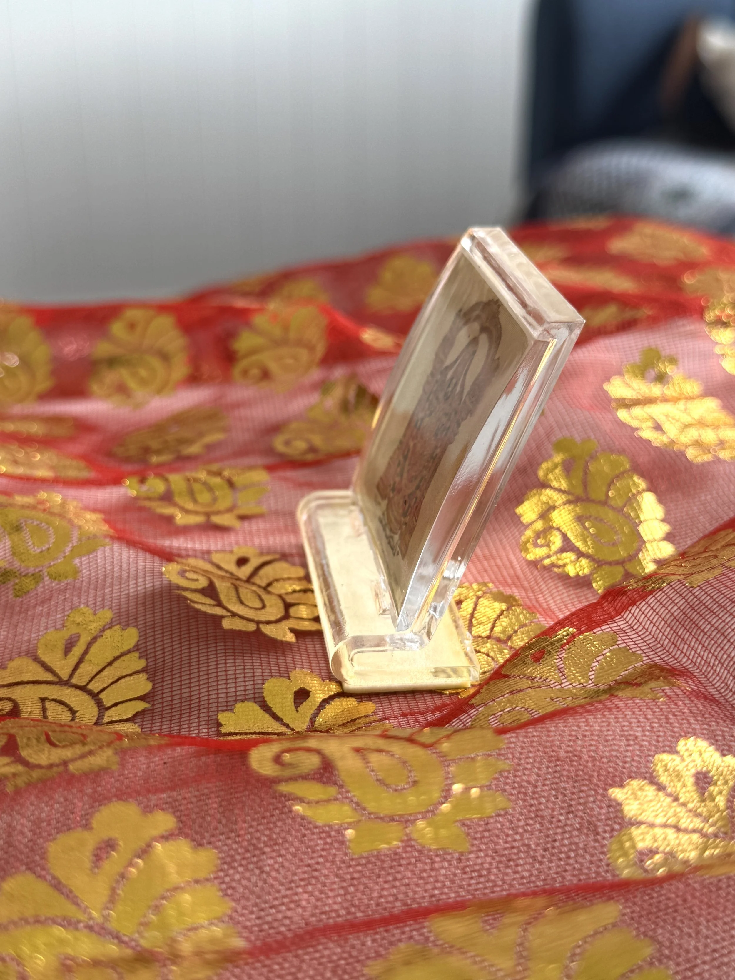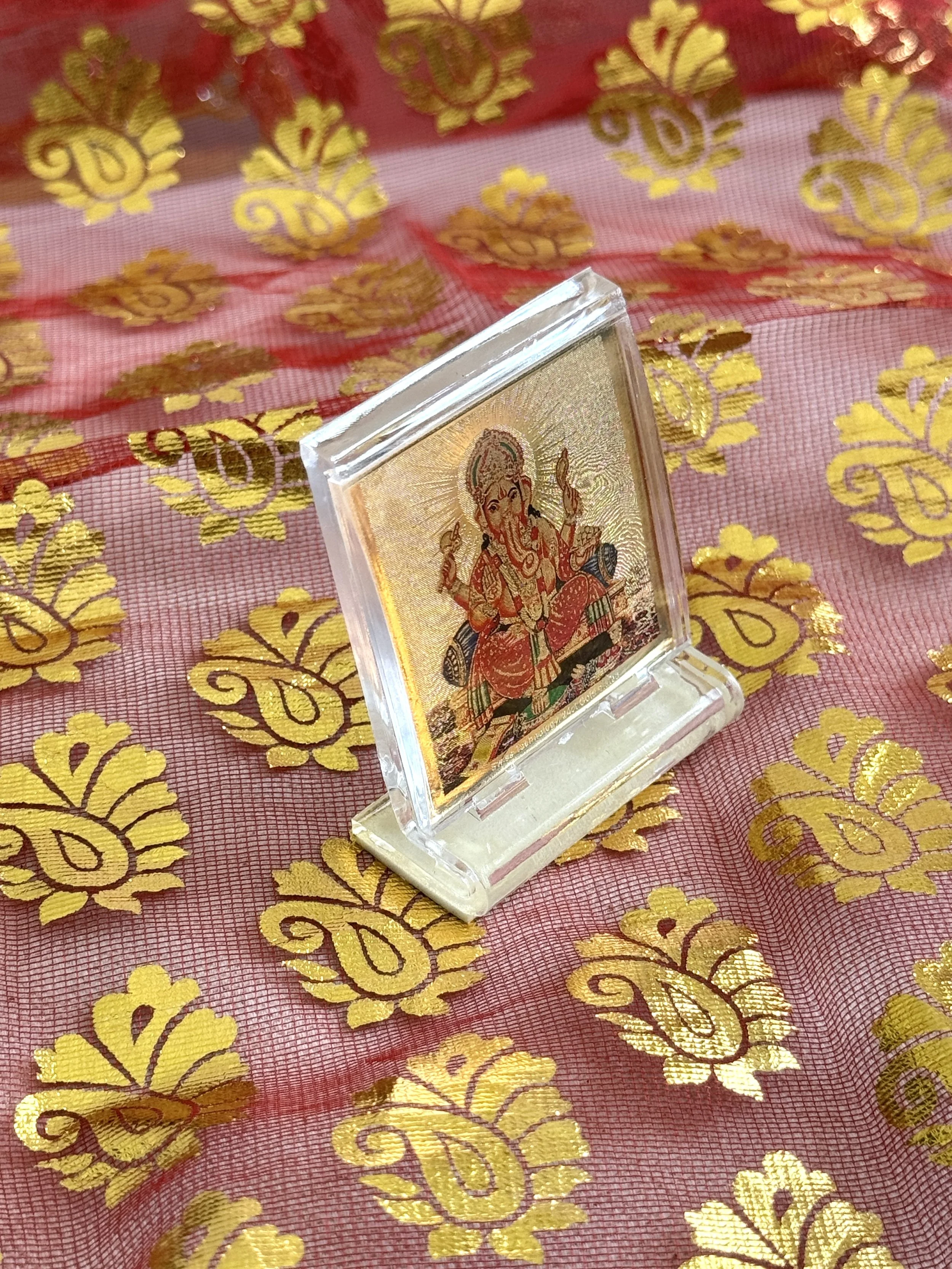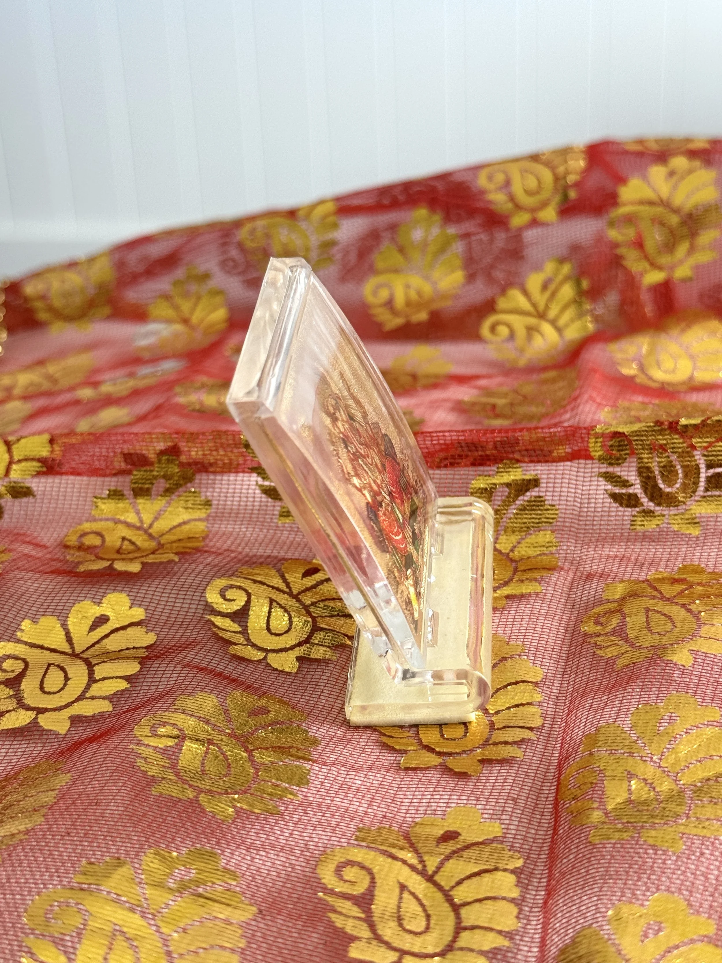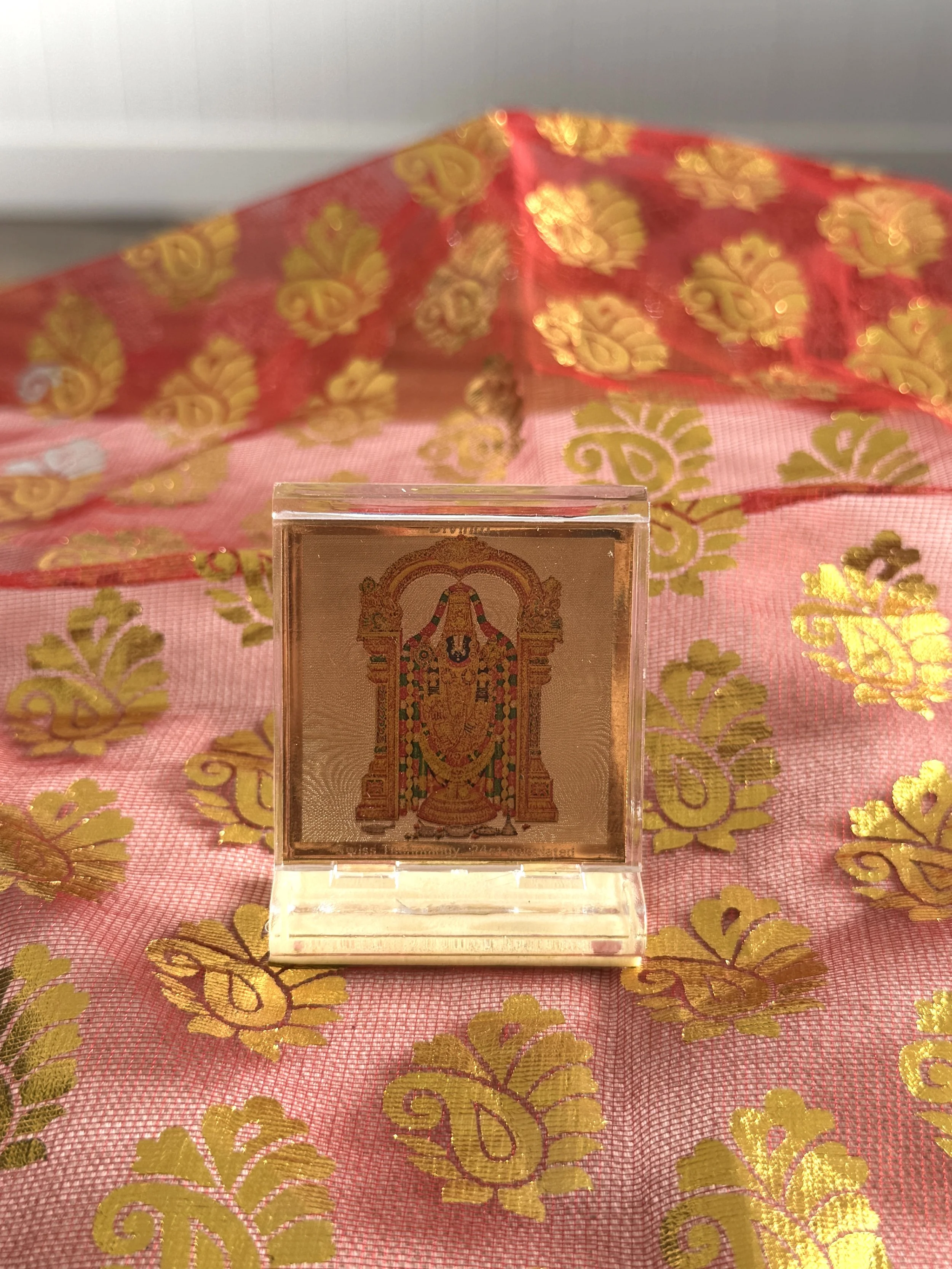 A timeless classic of Shrinathji in 24 Carat Gold Plated Foil. Bring spirituality and calmness to your car, home office or temple room.
