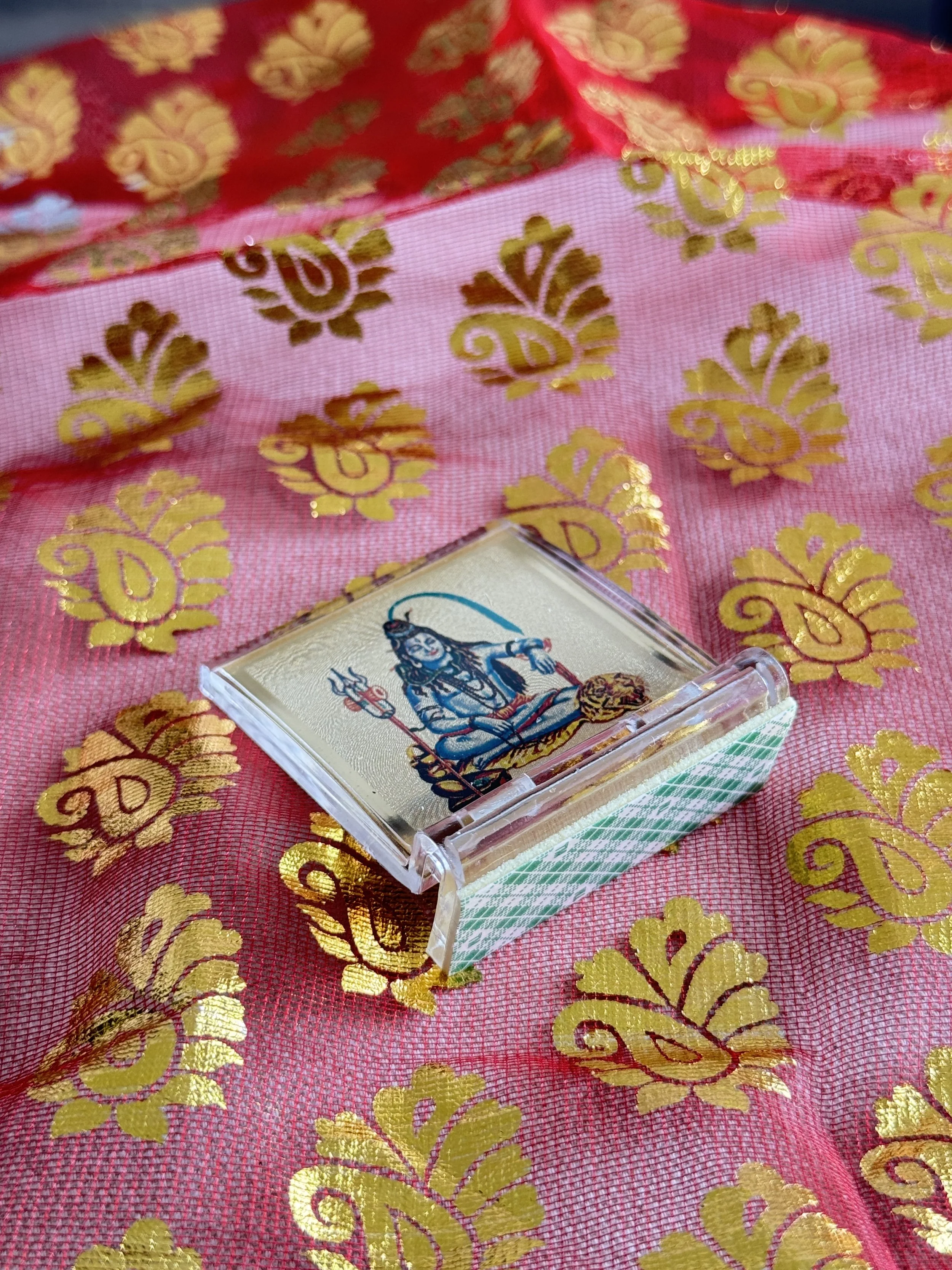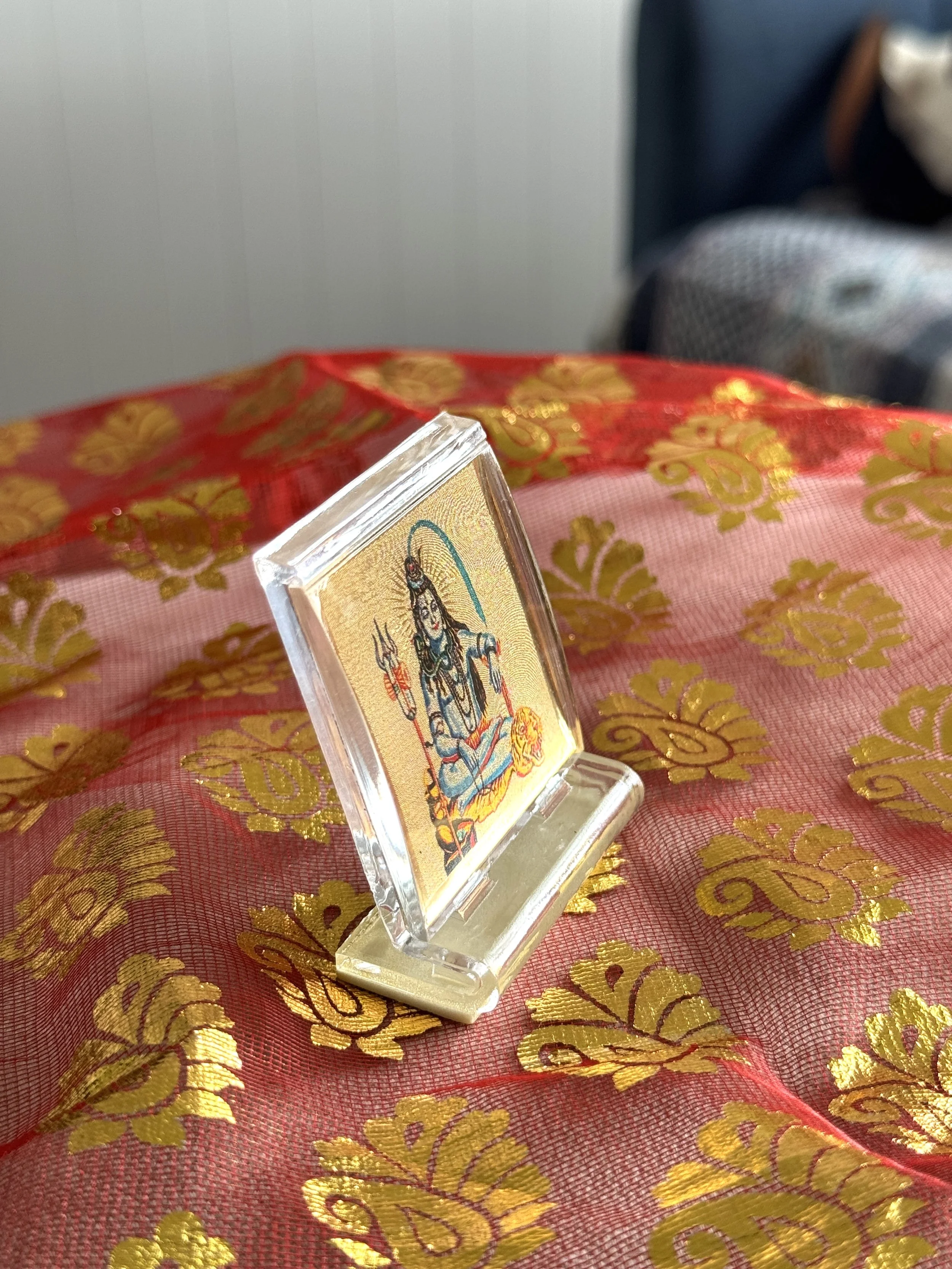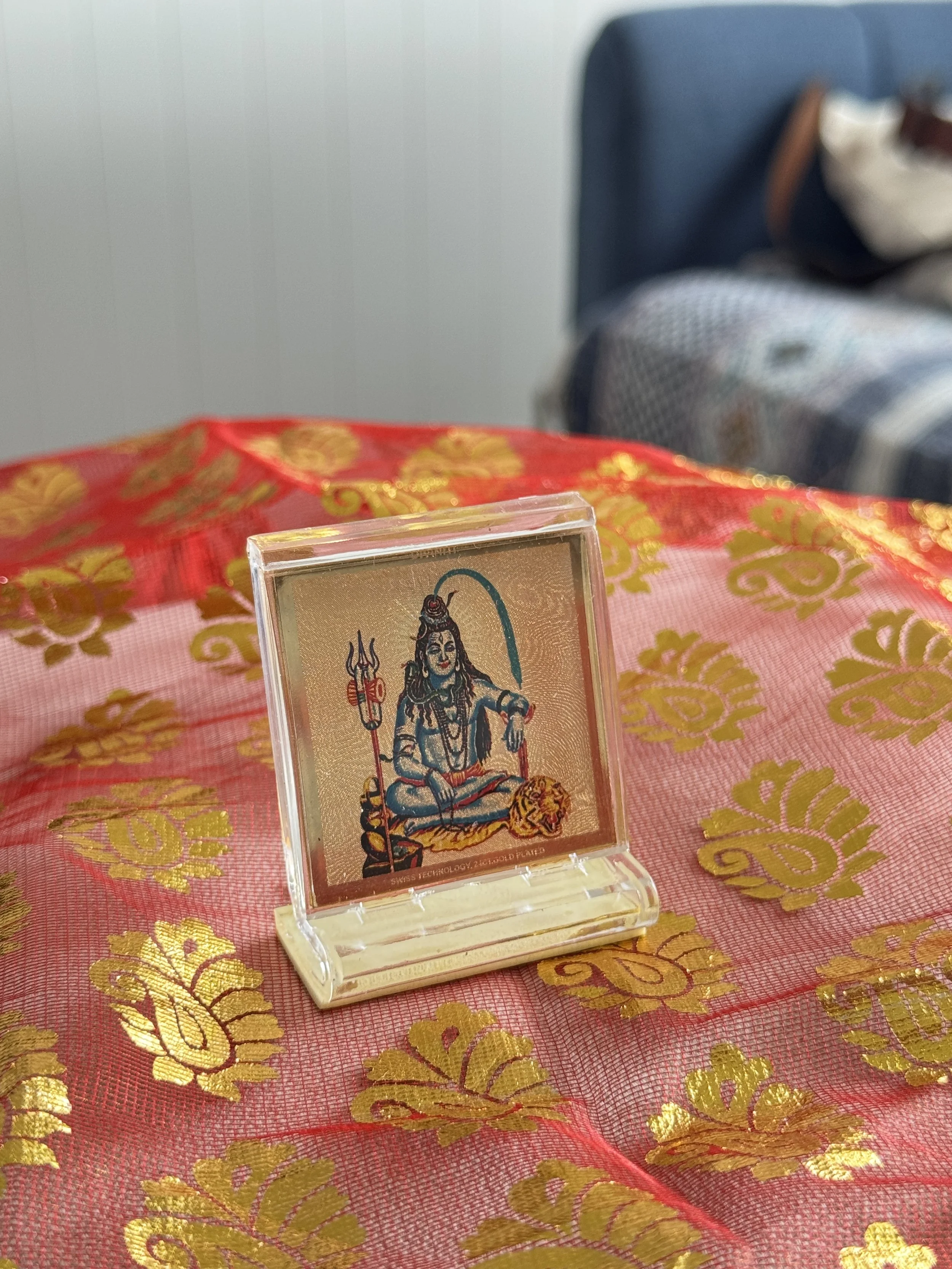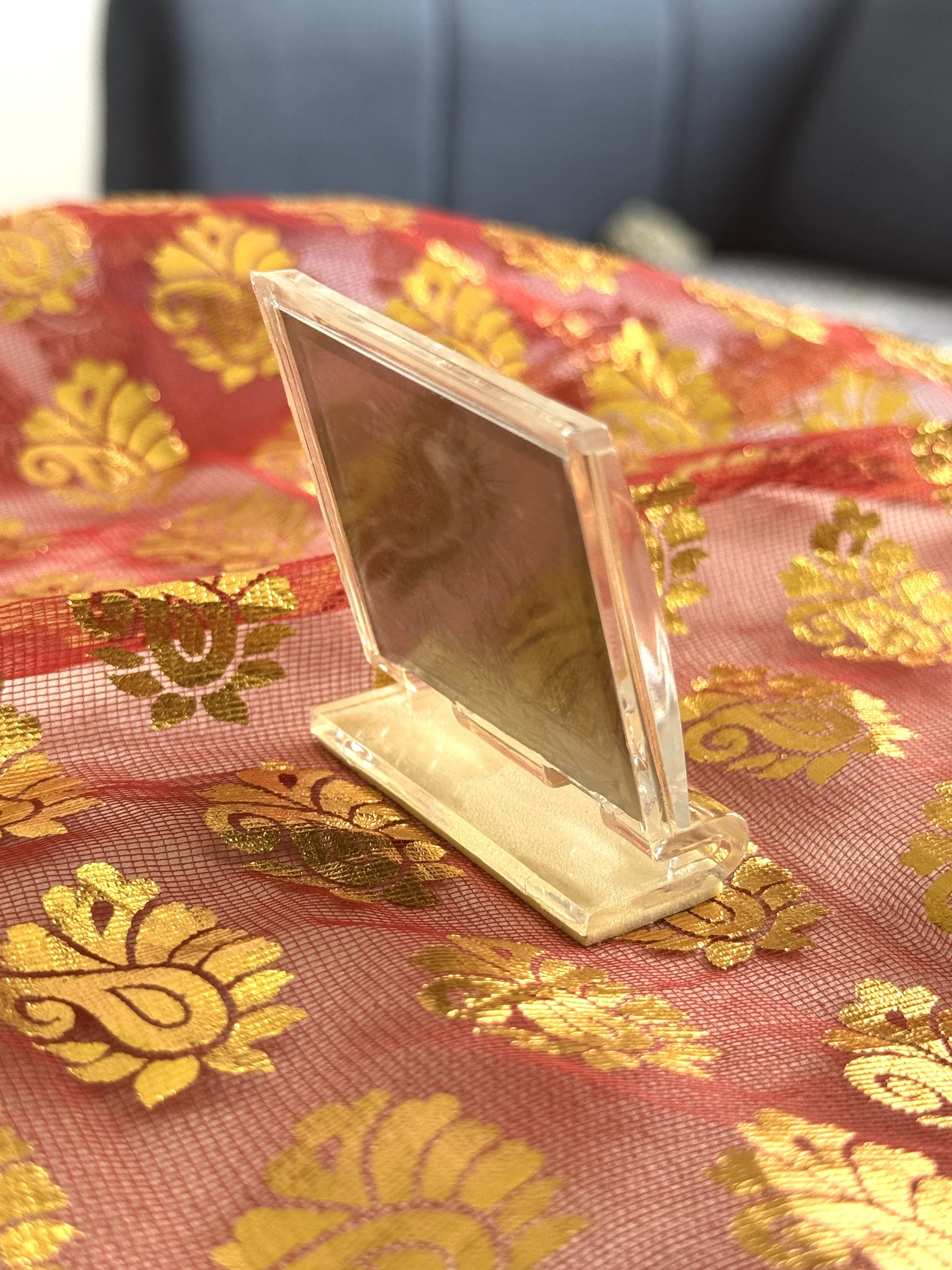 A timeless classic of Shrinathji in 24 Carat Gold Plated Foil. Bring spirituality and calmness to your car, home office or temple room.