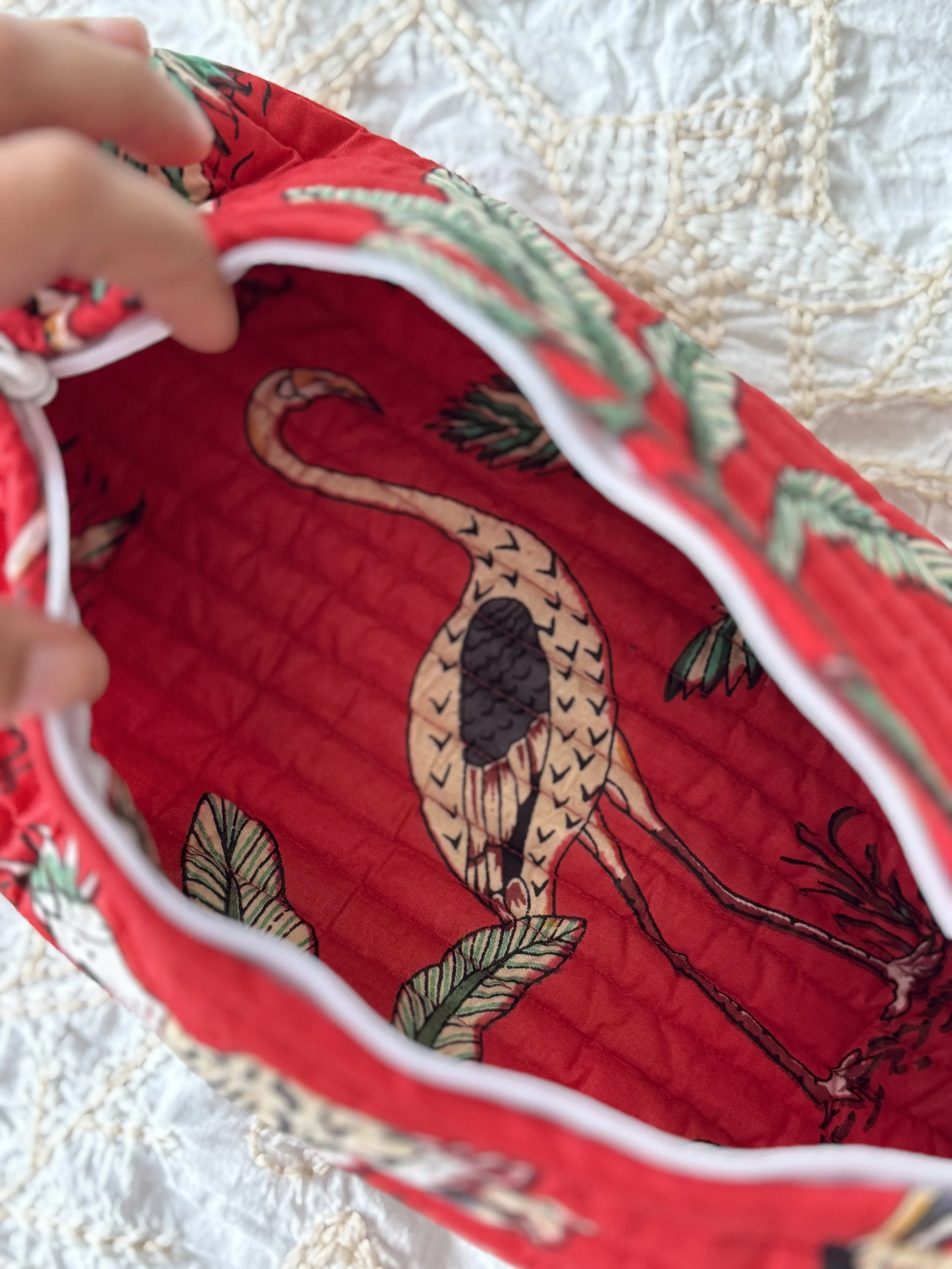 • This wee pouch is low-drama. Cold wash, gentle cycle – no need for hot-headed settings. No tumble-drying marathons – air dry it like it’s sunbathing in Santorini. And whatever you do, wash light colours separately.