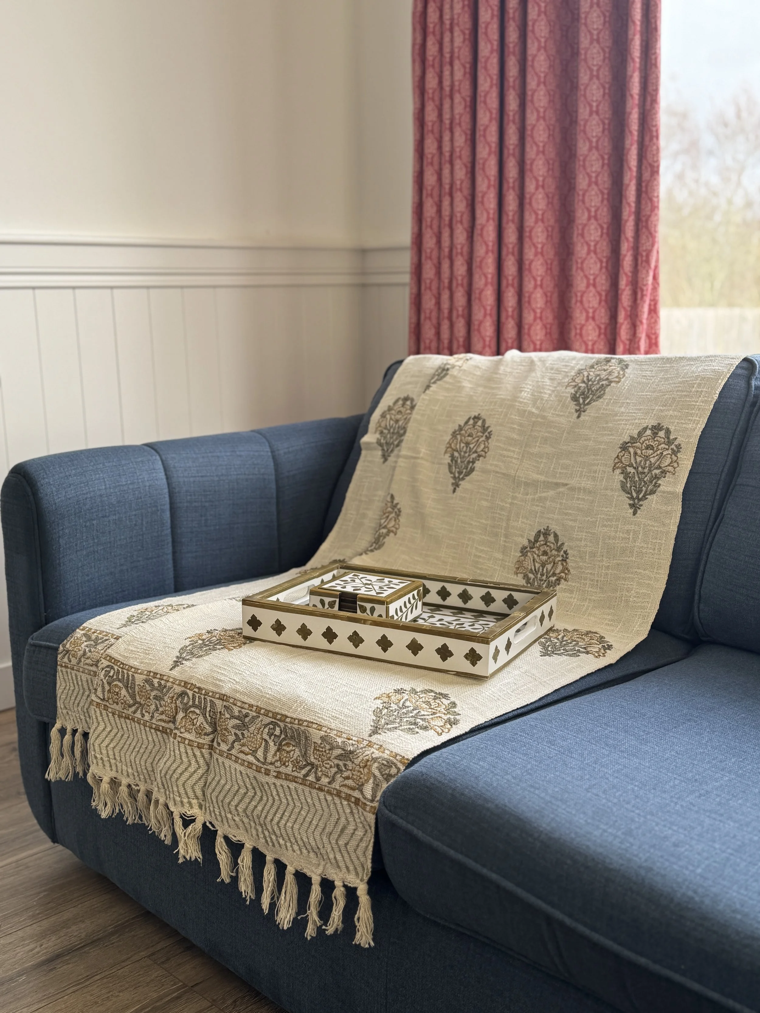 Traditional print techniques — especially block printing — have a wonderful irregularity that feels alive in a modern space. Each piece carries subtle variations, which is exactly what stops a room from looking overly staged.