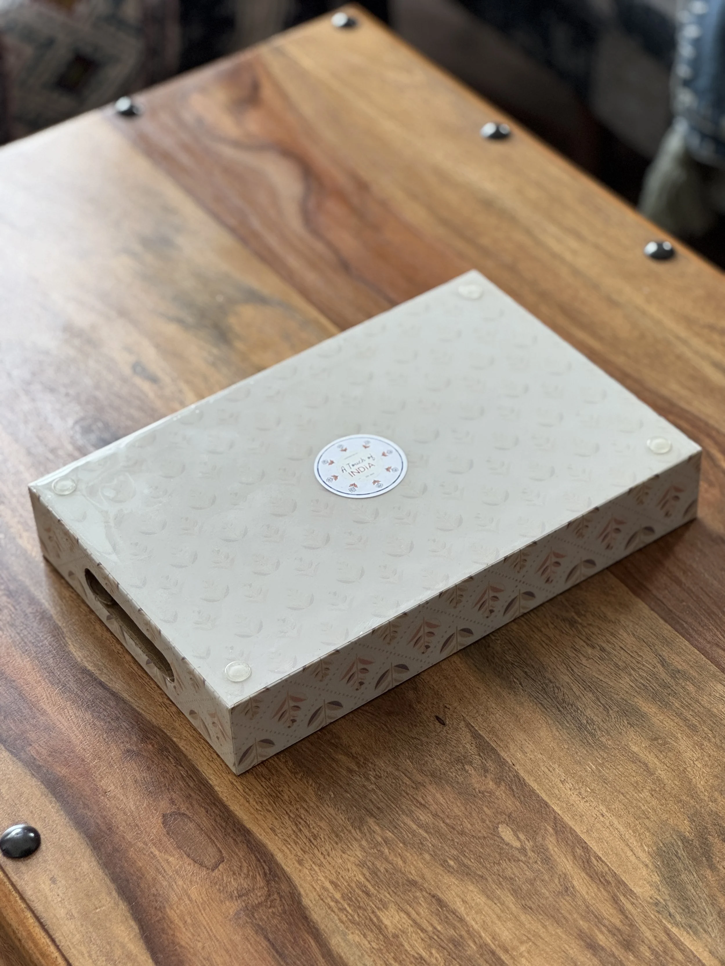Crafted in wood and finished with a high-gloss lacquer, our décor items are water-resistant, durable, and furniture-friendly. Non-slip, anti-scratch pads ensure they stay put without leaving marks. Intricate floral motifs, metallic accents, and rich textures bring a touch of India to every corner of your home.