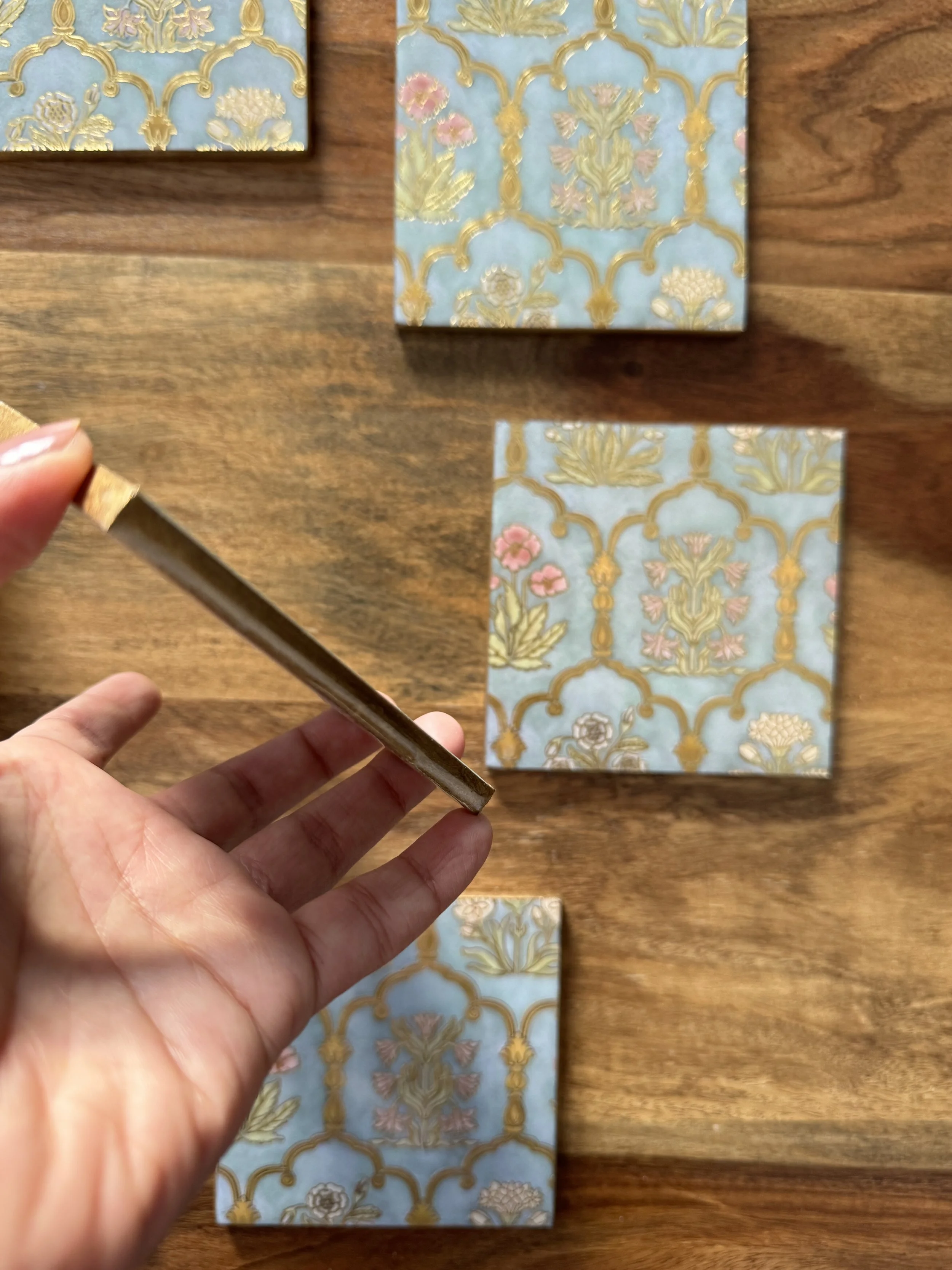 We use high quality foil paper to wrap your thoughtfully selected gifts for your friends & family. Any message you’d like to include is hand- written on a hand- made paper base notecard. See examples.