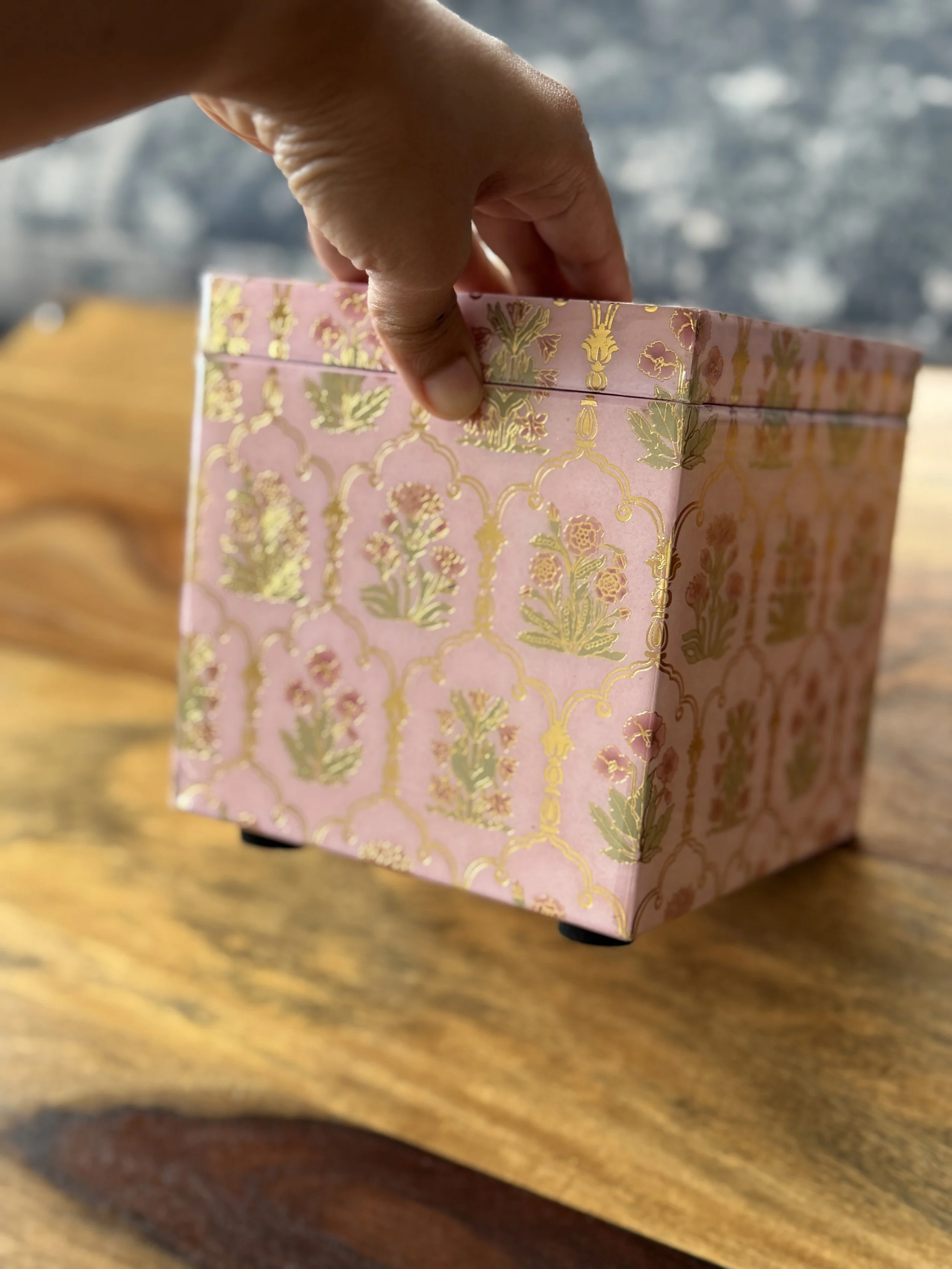 We use high quality foil paper to wrap your thoughtfully selected gifts for your friends & family. Any message you’d like to include is hand- written on a hand- made paper base notecard. See examples.