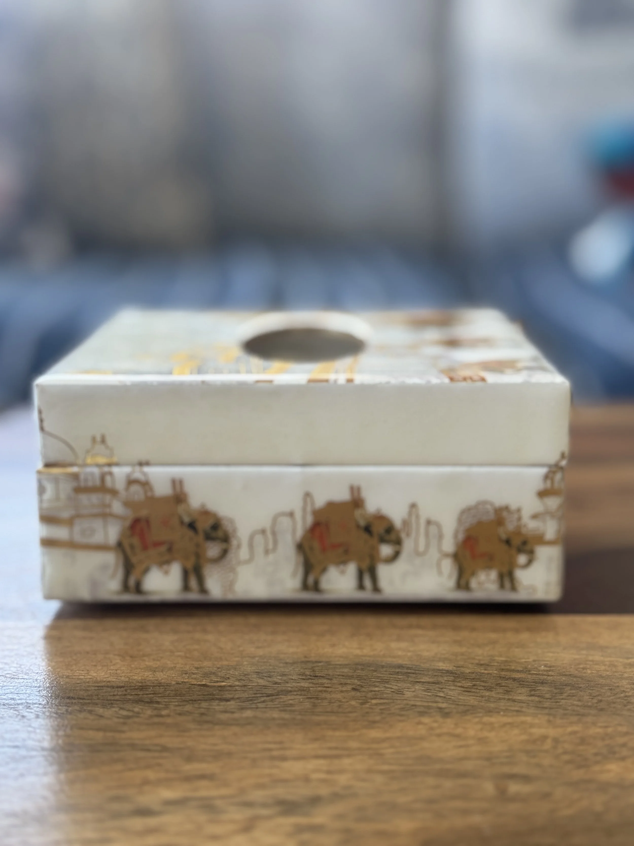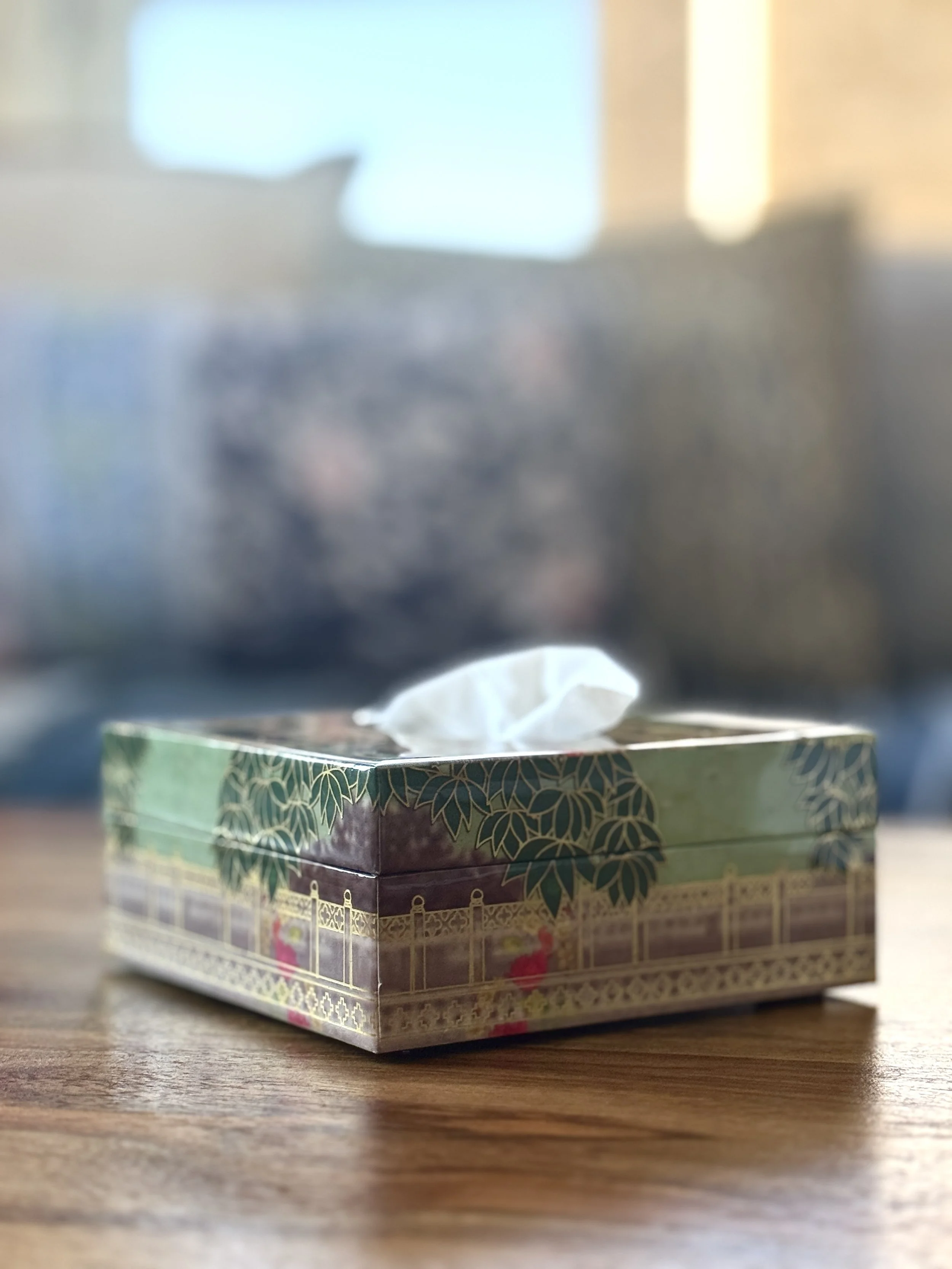 The small size of the tissue box, makes them easy to store, or display without taking too much space, yet making a bold impression.