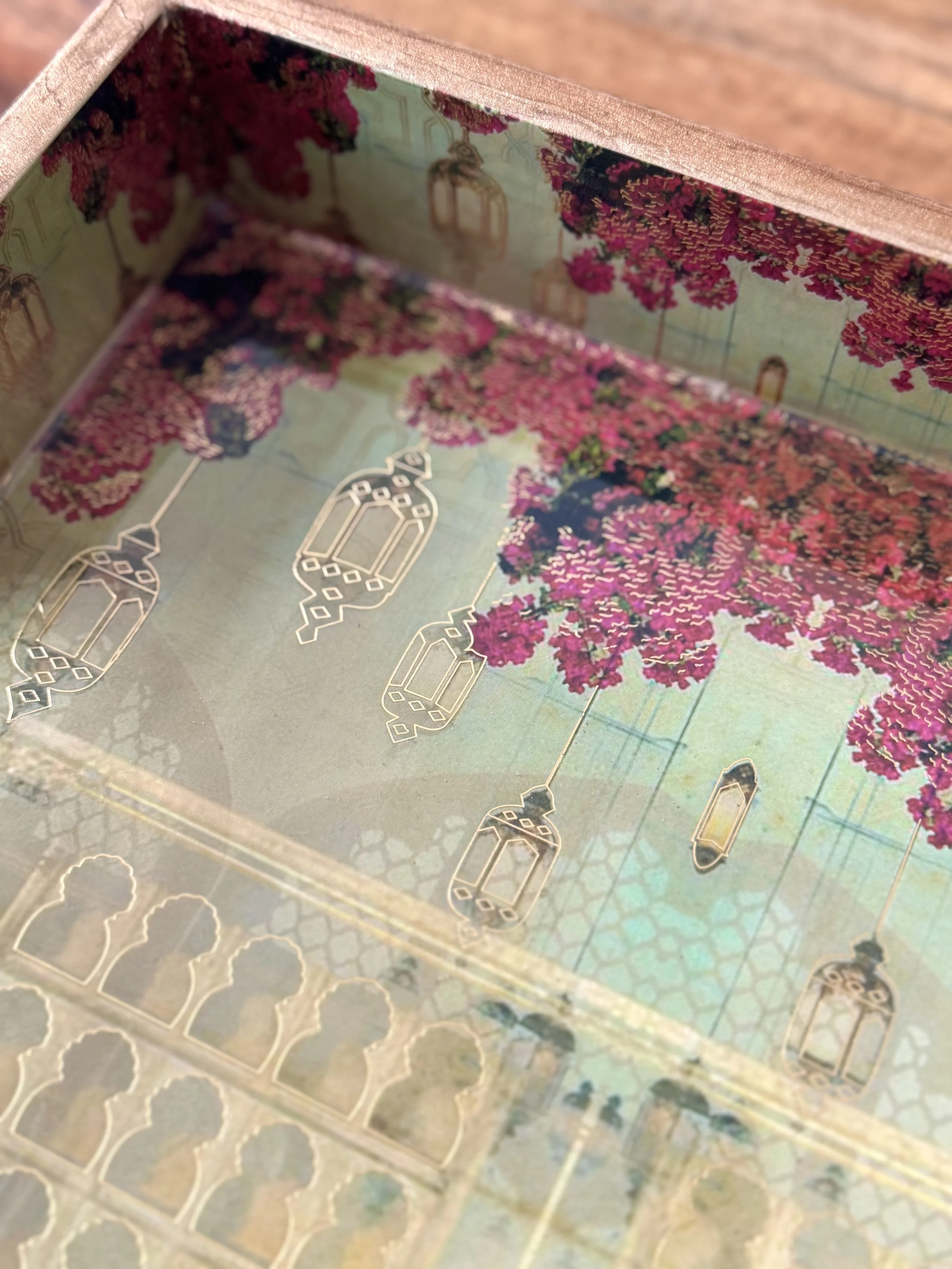Meet the majestic trio – a gentle elephant family, brought to life across a backdrop of grand archers & pillars of a palace. This print is all about quiet strength, love, and a little royal flair.