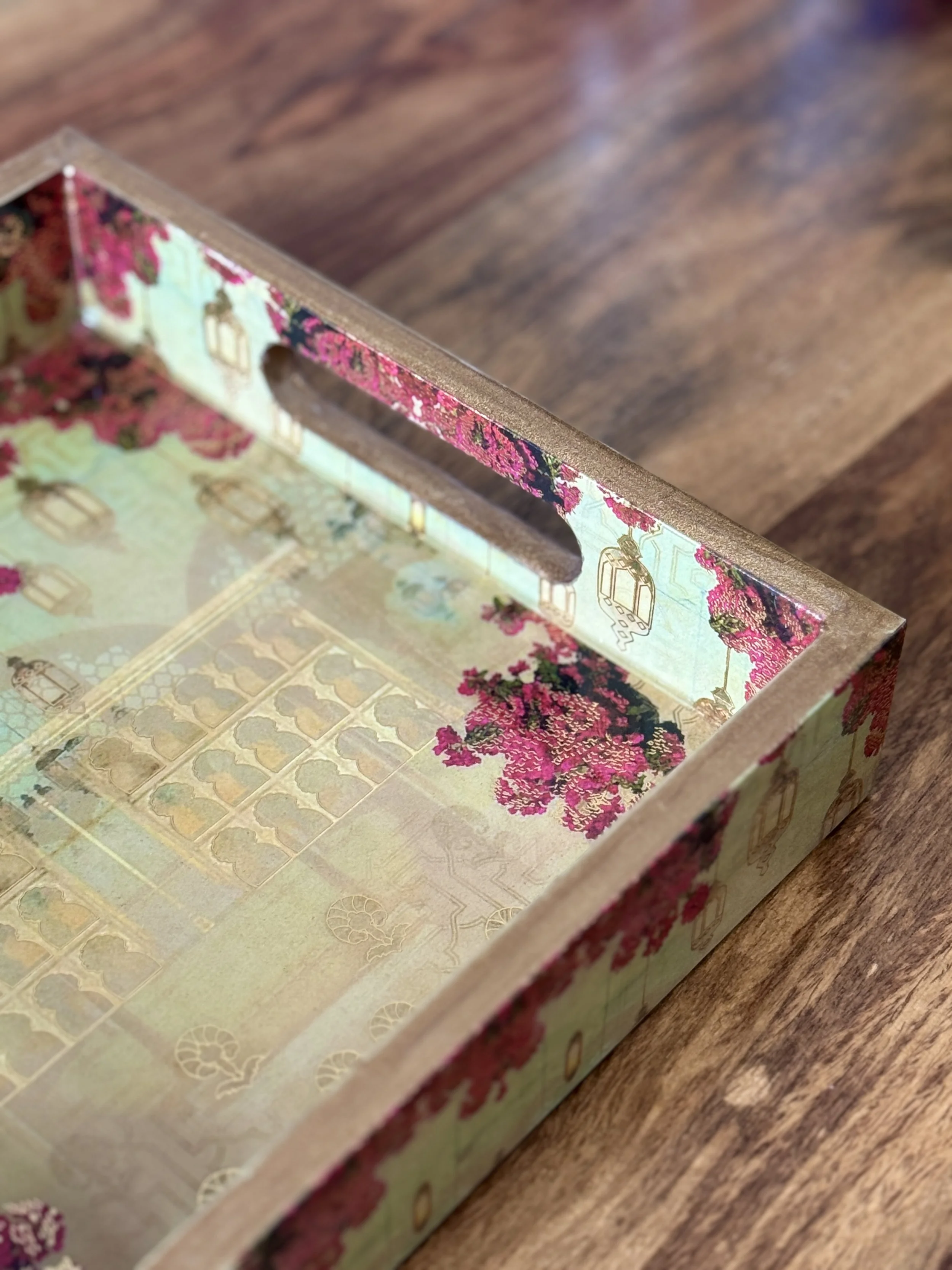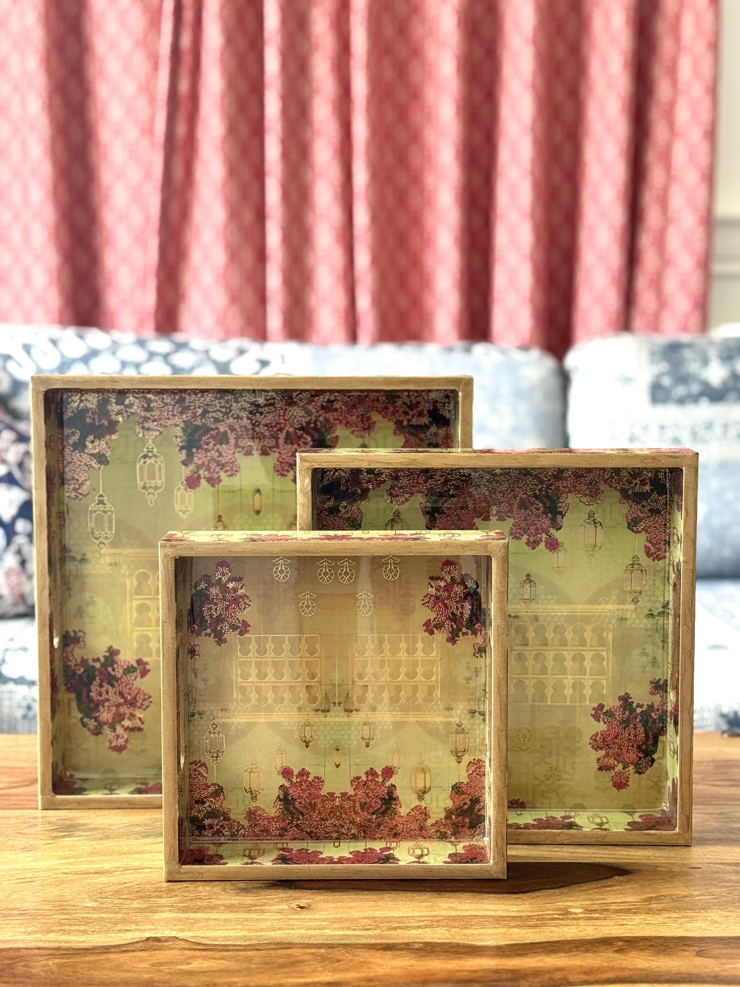 Usage: Use these trays to serve tea, coffee, wine, food, or place a candle and a vase on your coffee table/ ottoman.