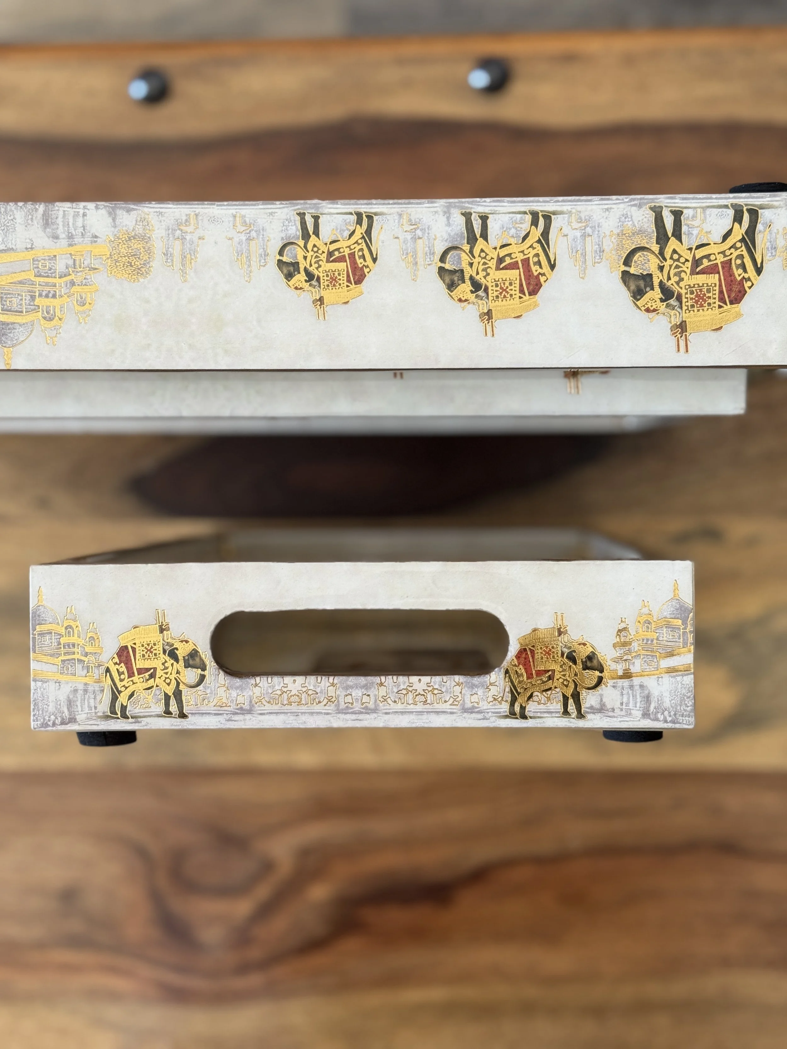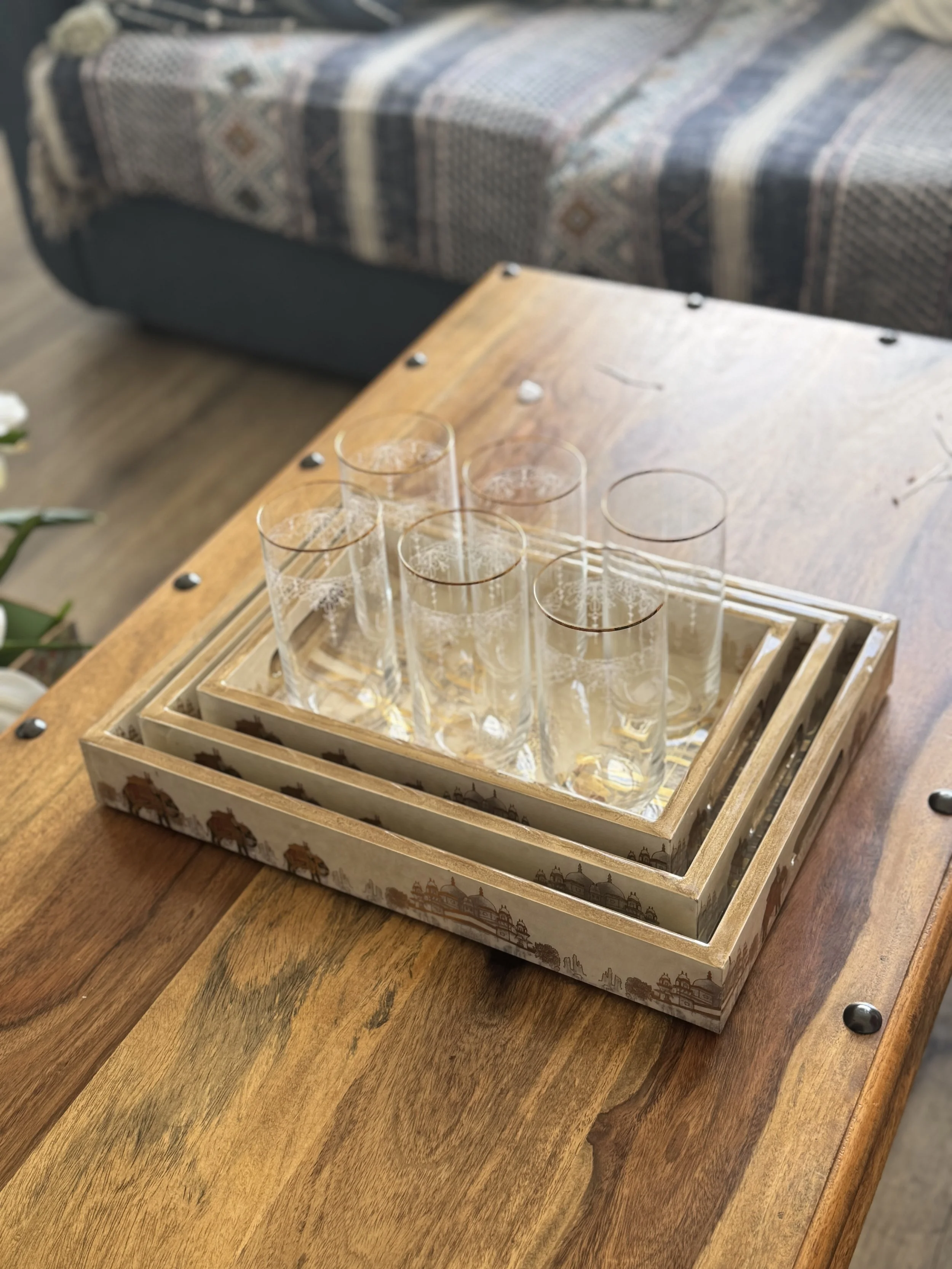 Use these trays to serve tea, coffee, wine, food, or place a candle and a vase on your coffee table/ ottoman.